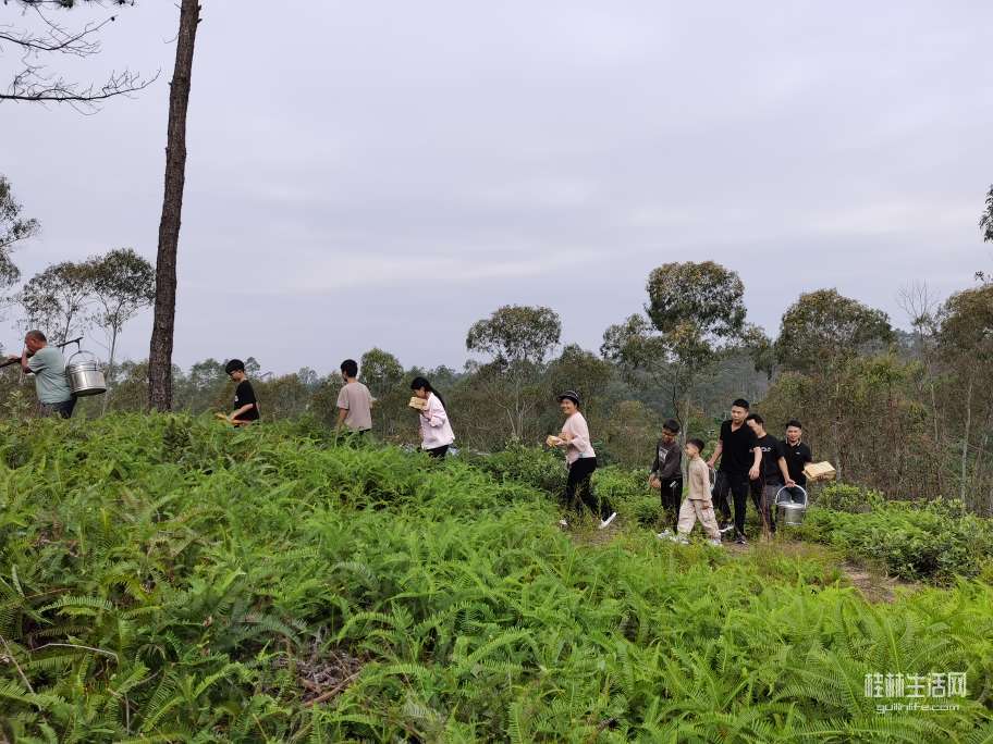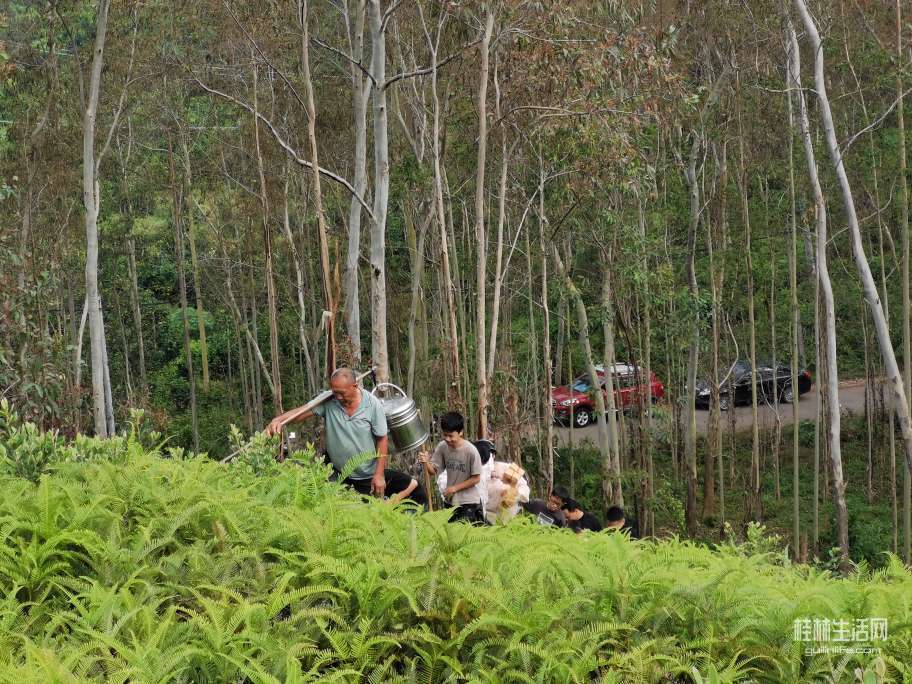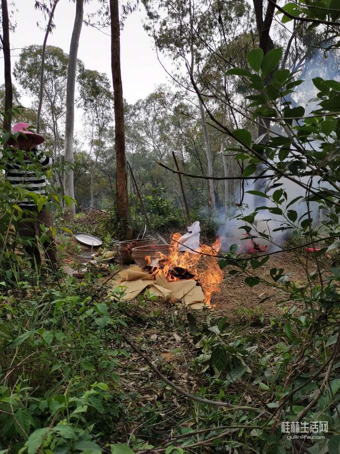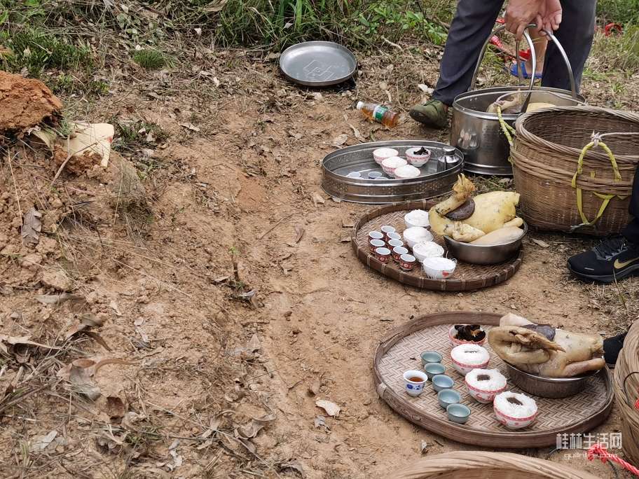 好不容易熬到六点多钟,家人都起来杀鸡,煮肉,做饭。原来今天要去山上祭祖。他们的重阳节相当于桂林的清明节。