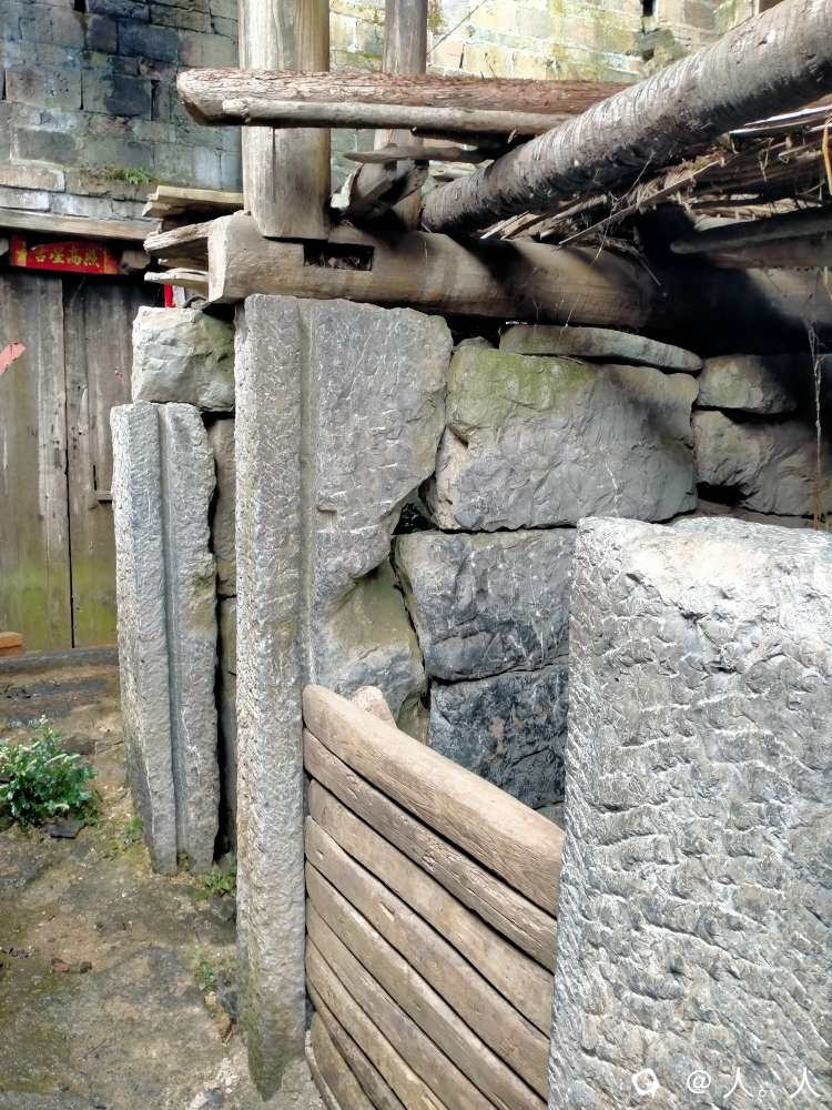 山里民居的第一层很多是用来养牲畜,石基上凿有凹槽用来安装木门。