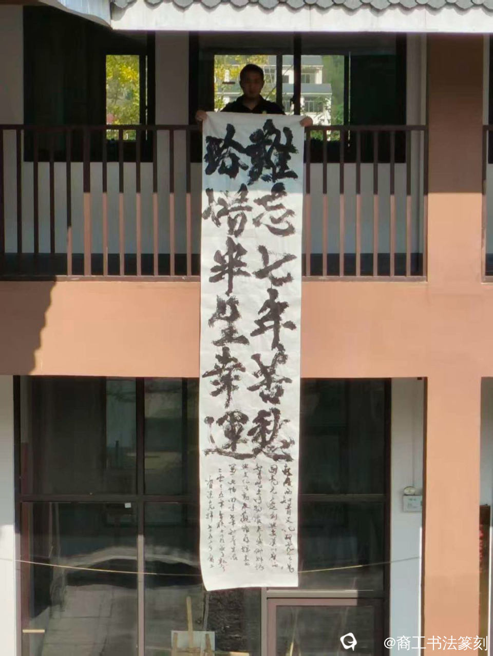 “人怕笑,字怕吊”,从小爷爷就教导过我的。讲人、特别是姑娘家的牙齿长得不好,总不敢张口大笑,羞滴滴的掩嘴不露牙的笑,是怕牙丑。字的好丑,要吊起来看才晓得。是的现在好多人字写完了,都没什么敢吊起来展示的。我也是如此,少有写这么大的字的机会。这回特别吊起来看看,总结一下经验,争取下次写好点。是早些年看跳水运动员跳下来后,教练给他看视频纠正姿势的做法得到的启示。