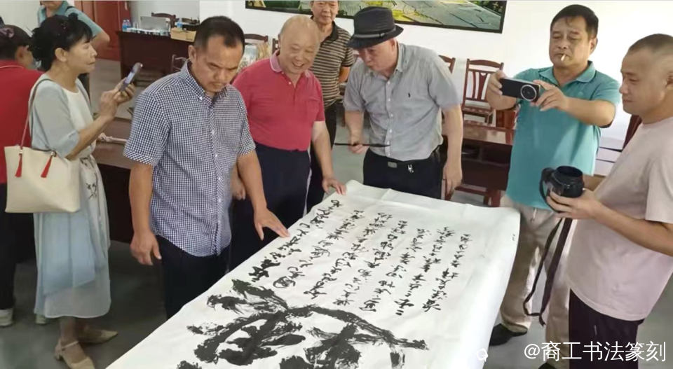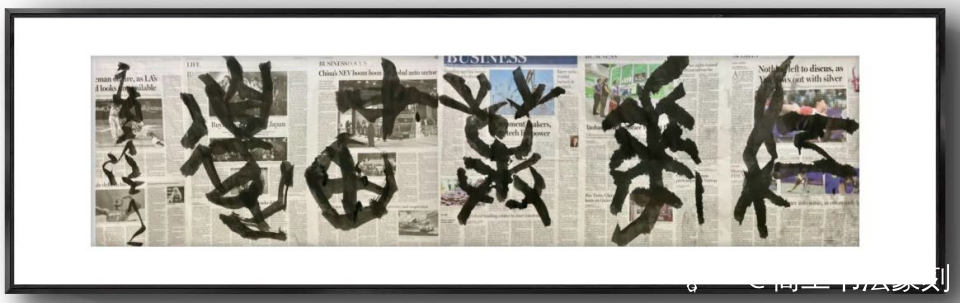 先看看挥毫的视频。榜书篆体,开叉毛笔,好丑不计,表达意志。