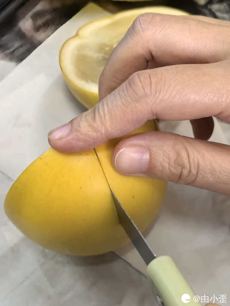 两刀下去,四片整整齐齐排列着,锁住水分,没有外流一滴水。果真像燕窝的口感,虽然我没有吃过燕窝。