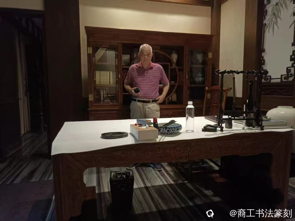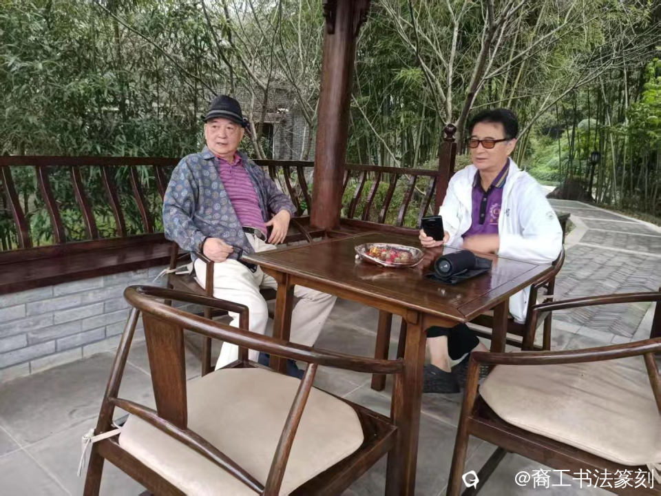 和画家陈宽闲坐小亭,吹晨风沐清新,眺看湖南零陵。