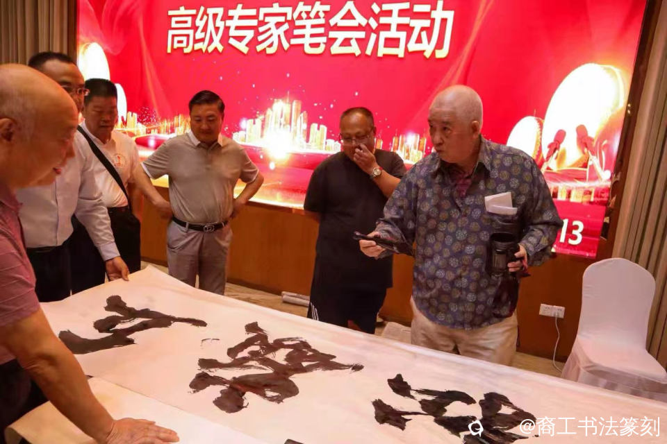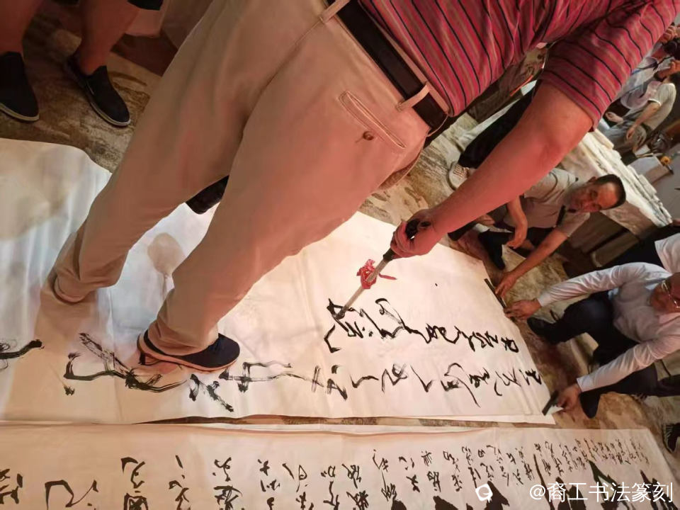 台上大笔舞完,换点耍法——地书,“君不见,高堂明镜”,莫急,还没到“悲白髪”的时候。