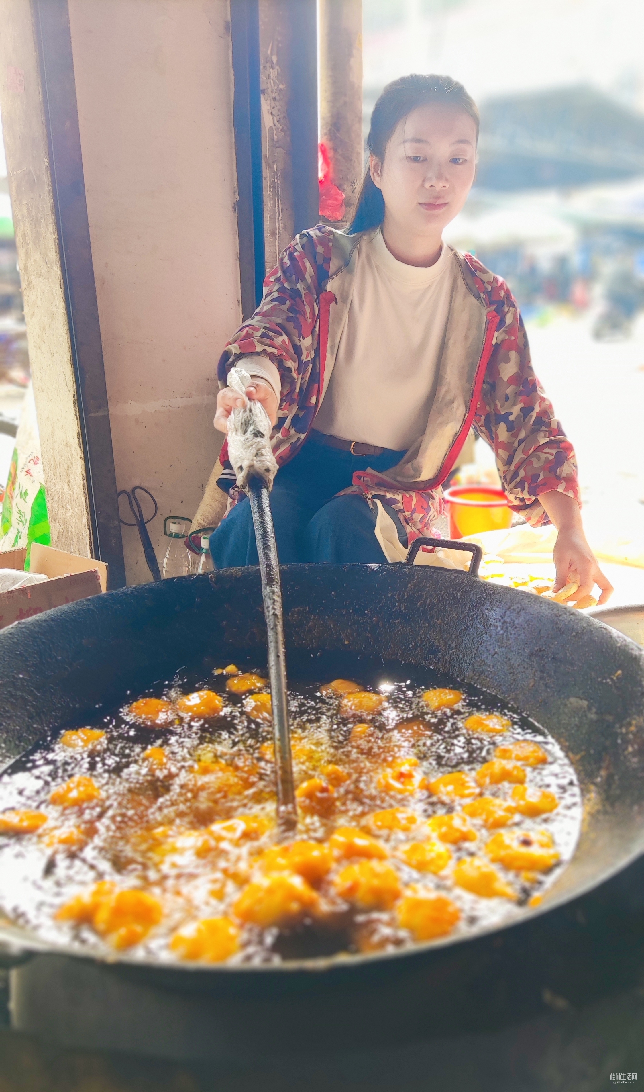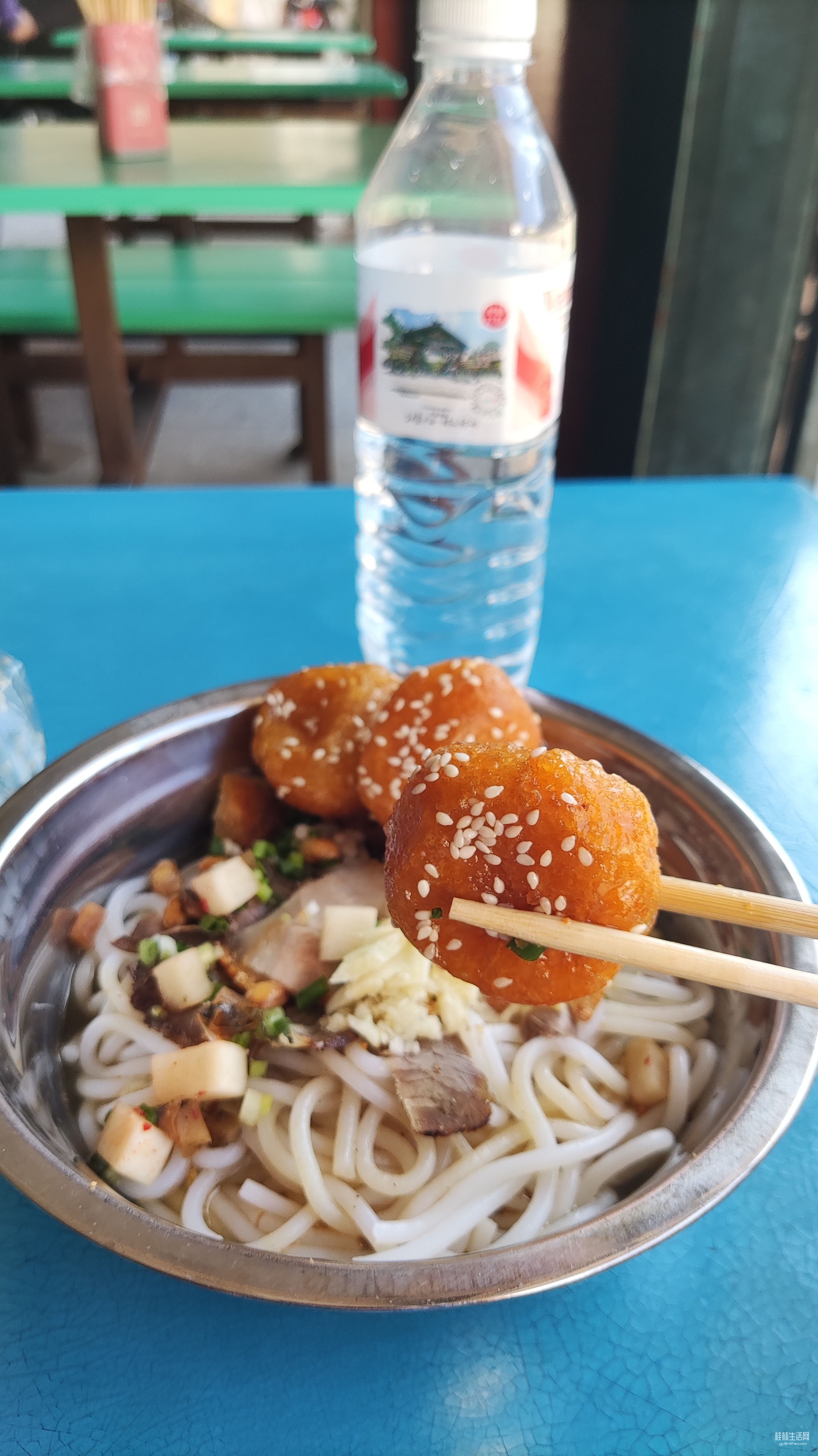 每次到潭下圩,都要来碗米粉,来两块钱油堆粑粑。味道好,想怎么吃就怎么吃,油堆粑粑拌米粉,可能是我的独创吃法了。