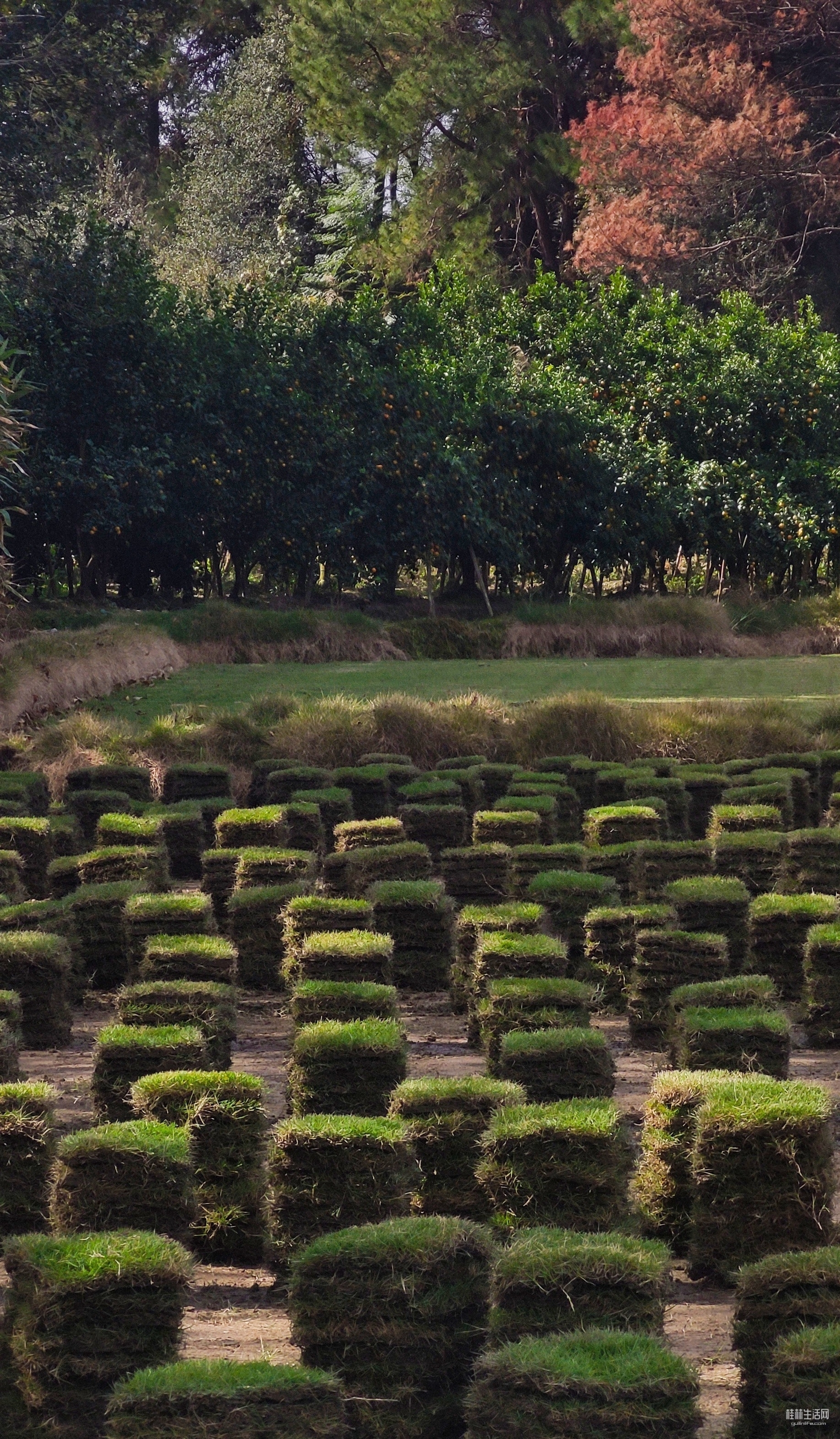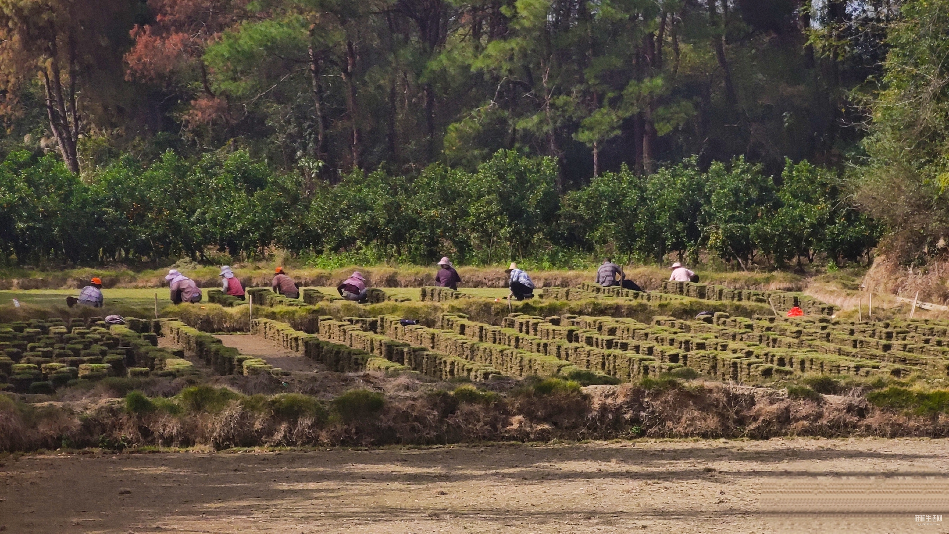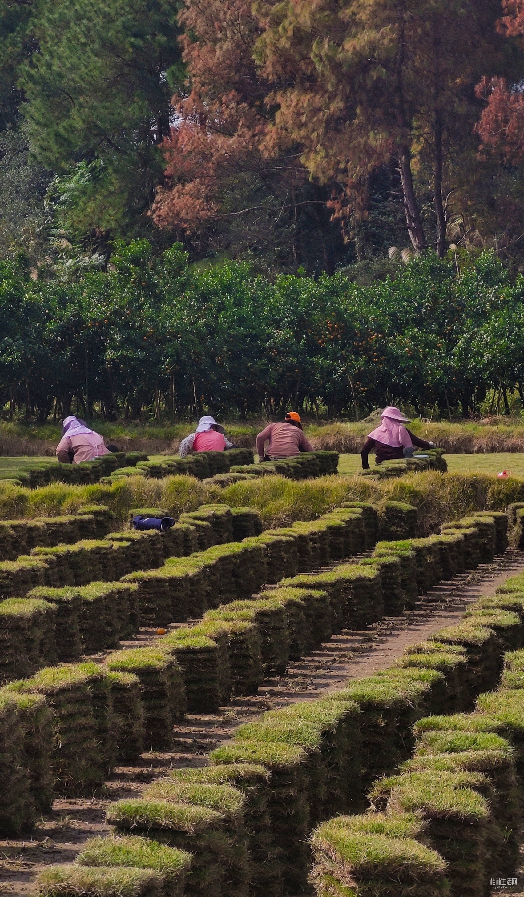 在油榨村还看到了温暖的伟人画像,漂亮的楼房围墙外挂有冬瓜丝瓜,田间里,铲收种植草皮也是要耐心的细活。