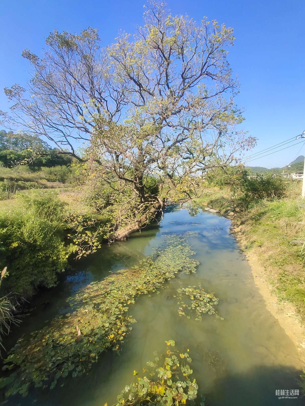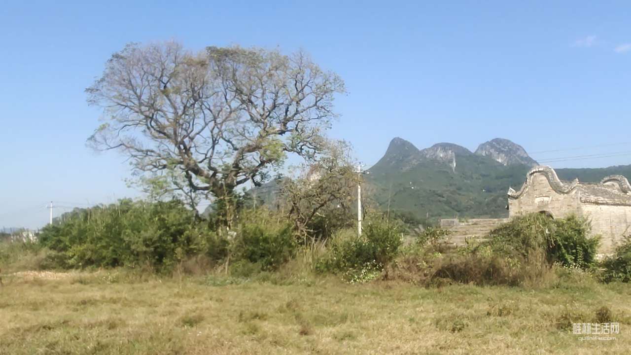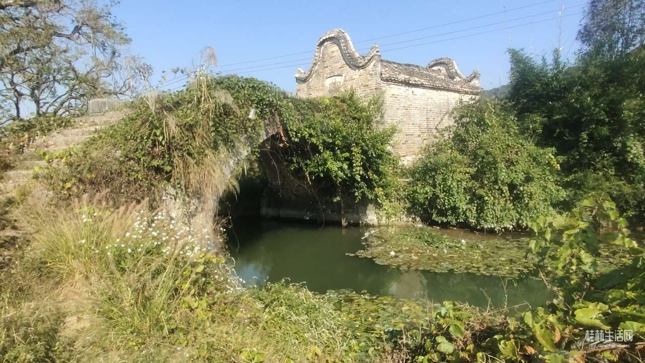 在桂林灵川社后村外,青山之间的阳龙桥,南亭。