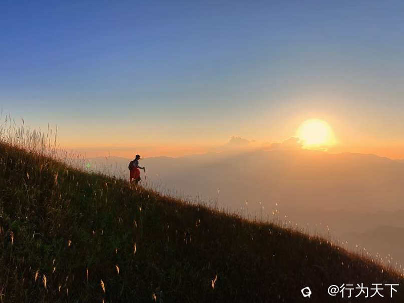 若逢晴日,云海漫山而来,界碑与草场在云雾中时隐时现,徒步者穿行其间宛如踏云而行。