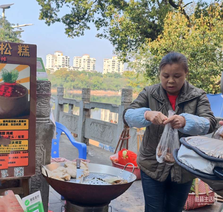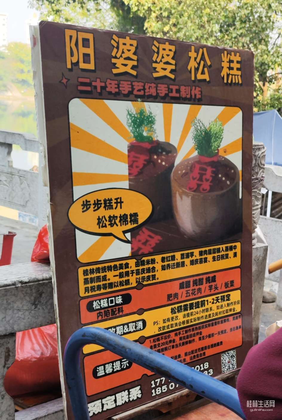 据说阳婆婆松糕是传统古法桂林松糕,每天早晨3点钟现做,用糯米磨粉后加黄糖水,搭配猪肉和芋头蒸成,松软爽口、香甜宜人,您想吃吗?