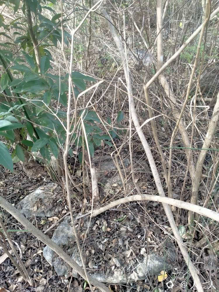 沿石板路边缘走没多久,右边有一个搭了一半的大棚,这时候需要猫腰在树丛底钻过。