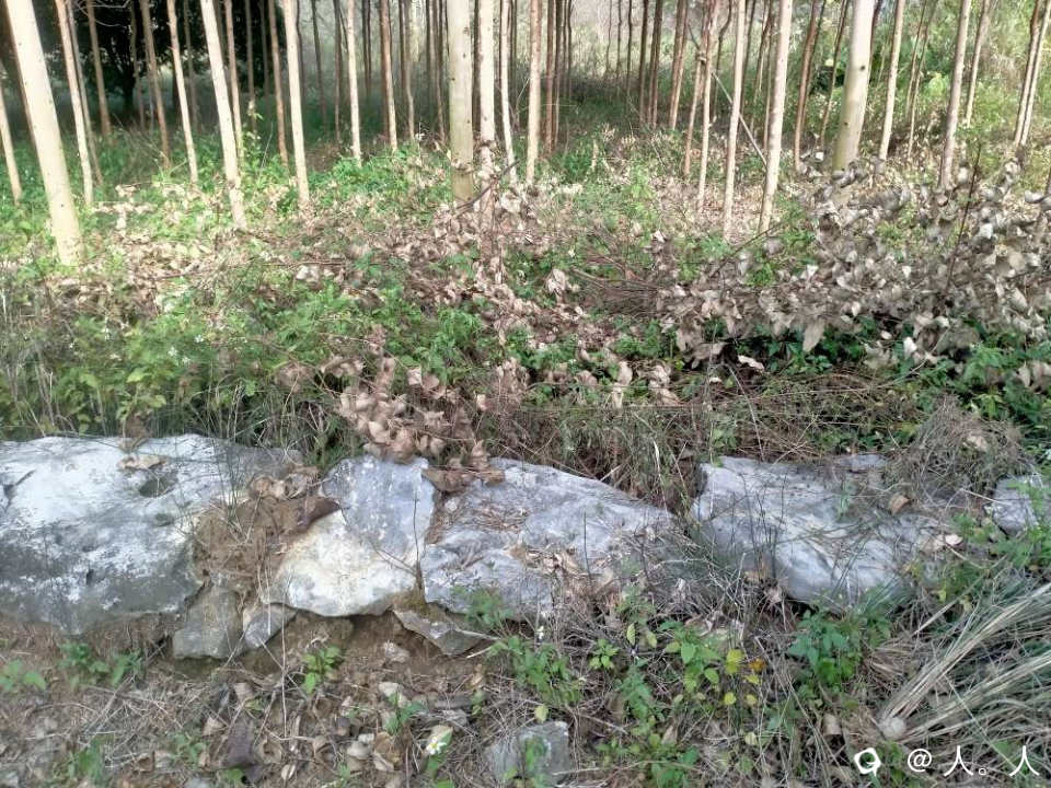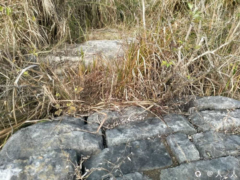 过石拱桥再走几十米茅草地,就看得到附近居民的菜地,石板路在这里消失。