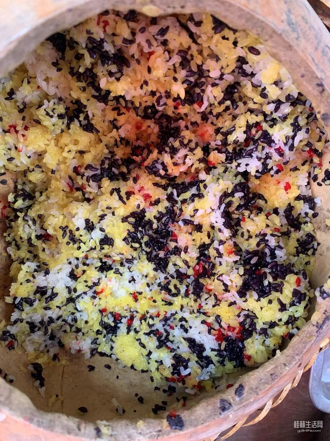 是几种颜色米一起做的!价格也便宜!相信很多桂林的朋友都没见过