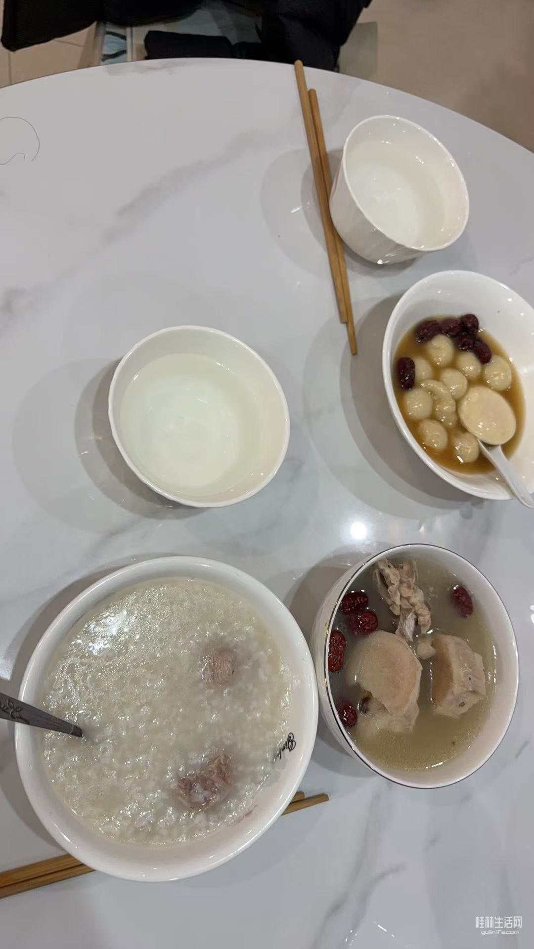红糖姜水鸡蛋煮汤圆,这个花生汤圆煮的时候,总是会脱皮,煮出来卖相不好!作为一个在家乡三餐不离汤,喝汤长大的人,早上来一碗昨晚剩的,葛根骨头汤,神清气爽!和爱人聊着天,吃着早餐!幸福就是这么简单!吃完早餐再来几口温开水!生活充满了阳光!