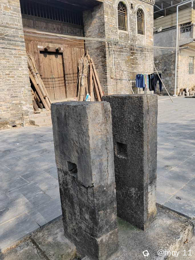 谁也想不到,金盆村这个村落,竟然有十三对功民夹石,古樟分分布于村落四周,村子房前一排过去都是夹石,村子里人都称之为栓马石,因为过往的金盆村,现今在世的老人说,在70年代左右,以前见过骑马之人,在夹石边栓马。