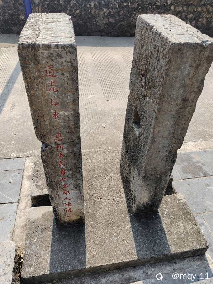 但是游走一圈所有夹石之后,发现也仅有陈怀正举人的夹石,有刻字,能分辨出来,道光中式第七名,举人,而从《灵川县志》里面也能查阅得到,道光二十年,以乡试武举,成为武举人,同书之中还记载有,乾隆九年,陈延瑜,也为武举人。
