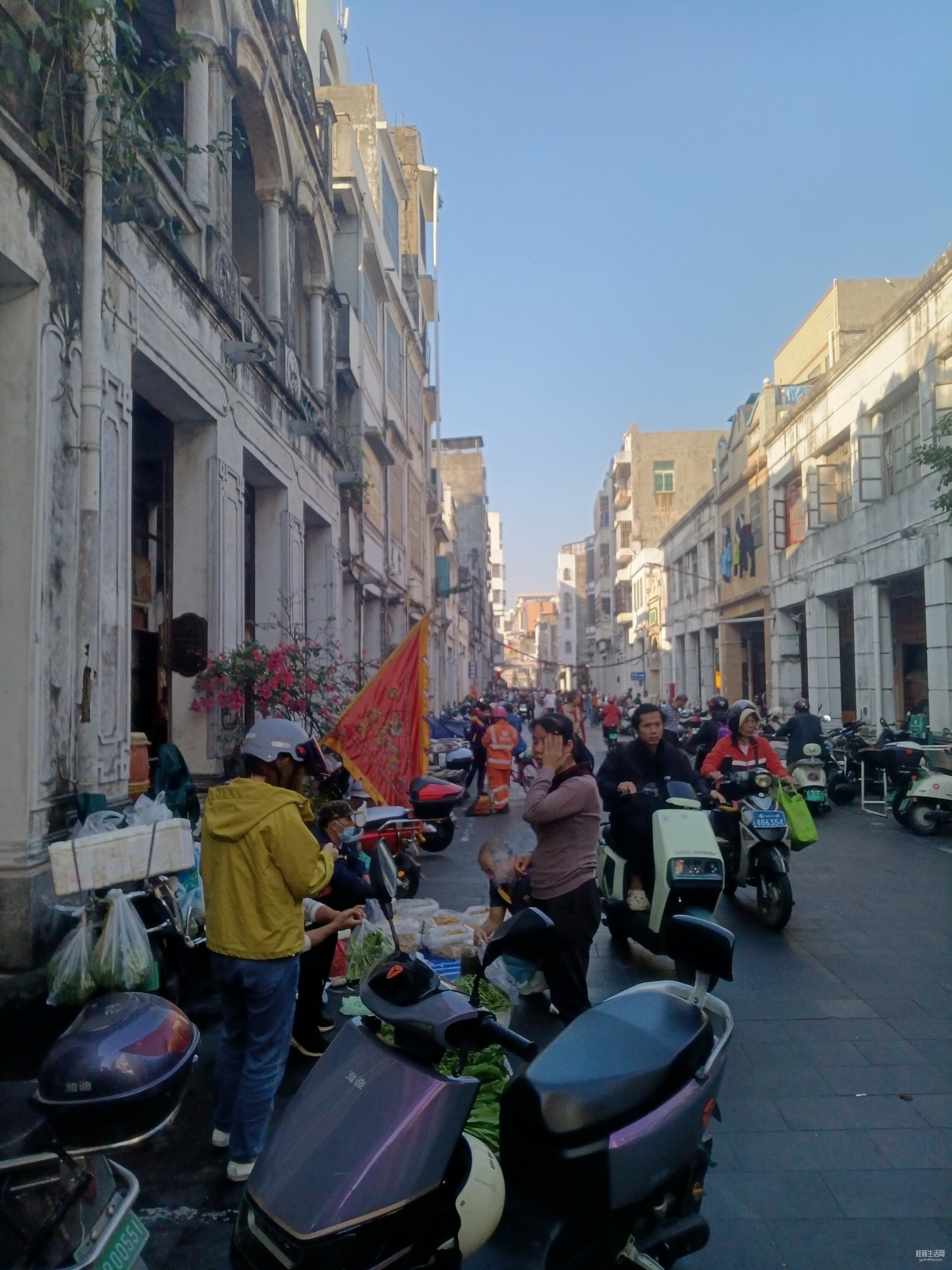 来到骑楼老街,游客如织,这里有海南各种粉店,后安粉,海南腌粉等,斋菜馆,鸡饭店,小饭馆,点心铺子;卖斑斓糕,鸡屎藤的,还有卖水果 ,卖小菜的;卖鱼的,,,, ,  ,满是人间烟火气。