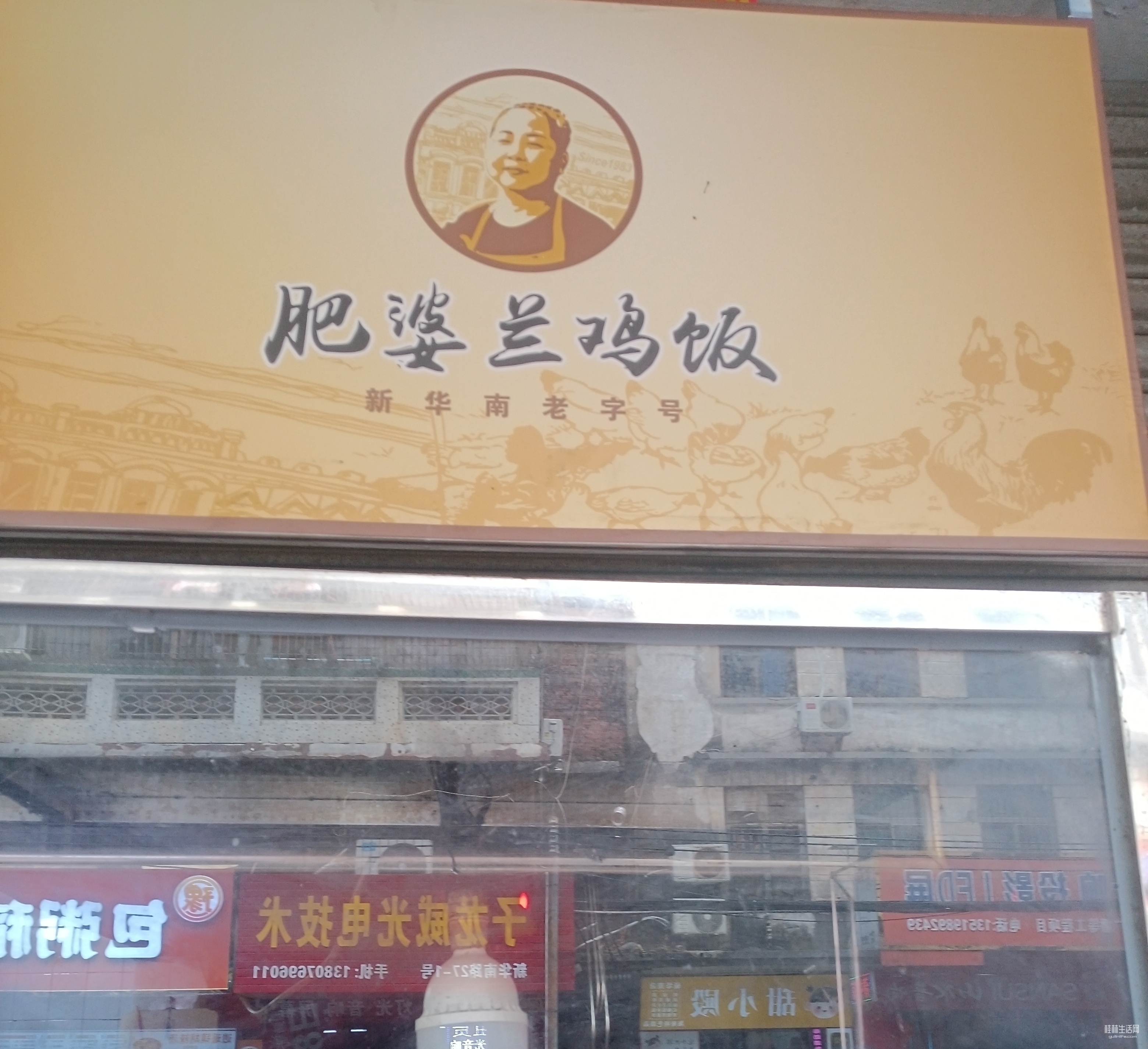 转到网红老字号—肥婆兰鸡饭店。这是一爿不足10平米的小破店,可是名声在外的网红店啊!此时是阴天,拍的效果不好。