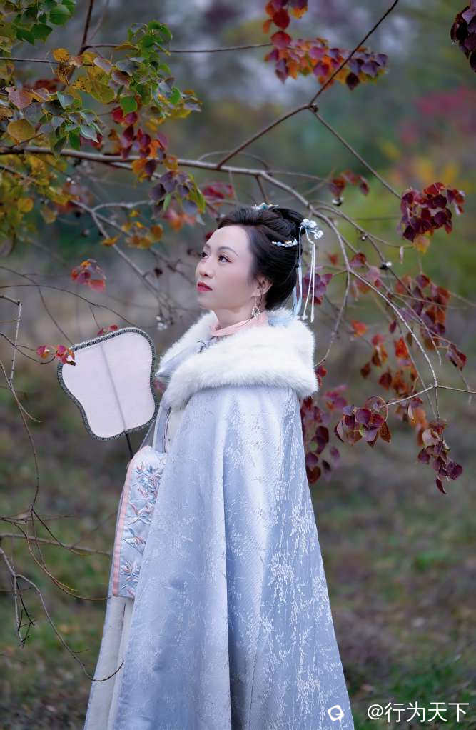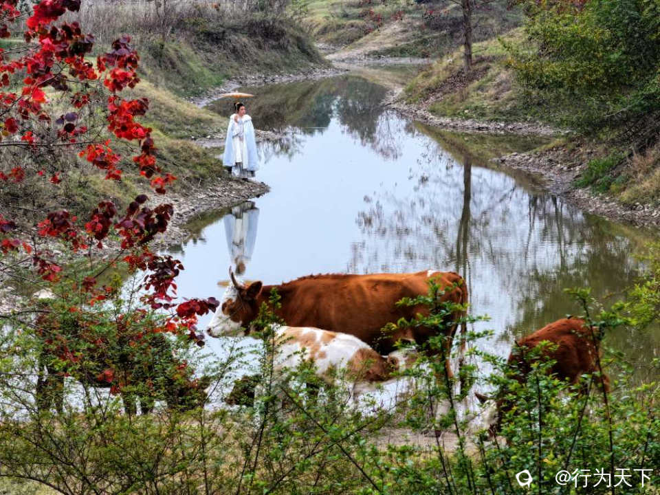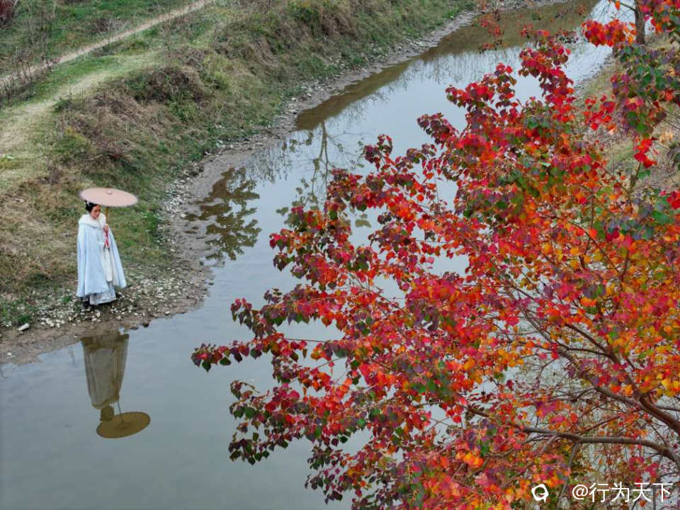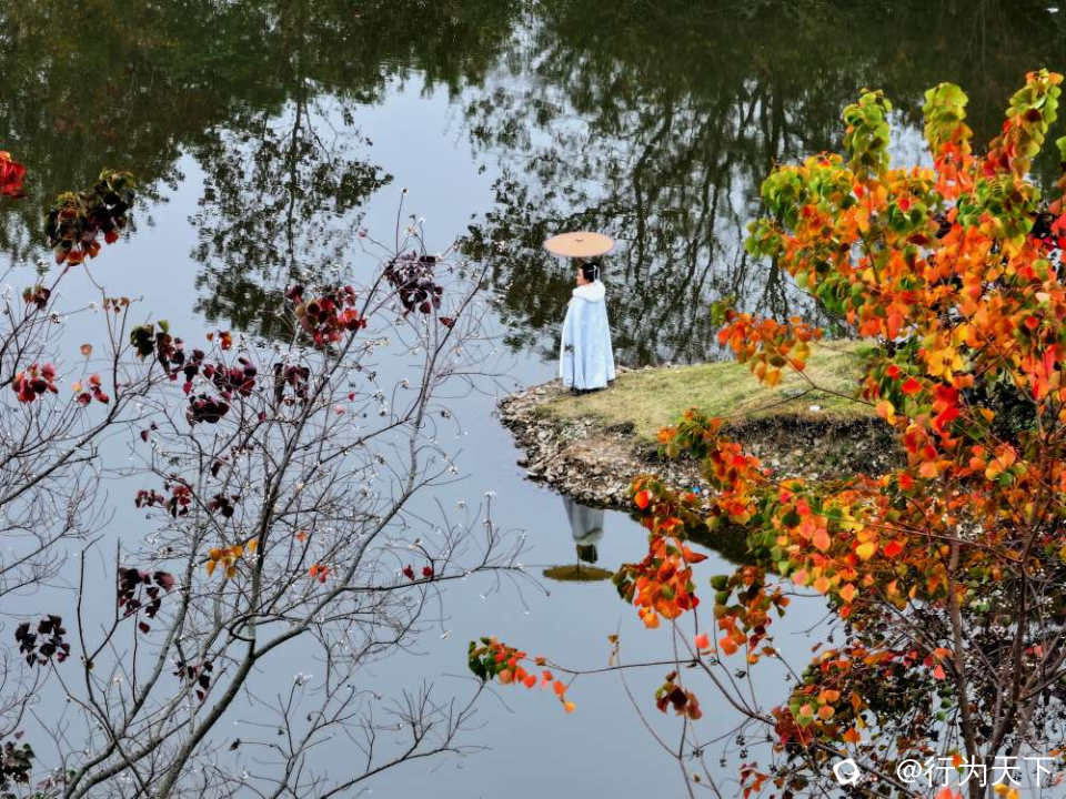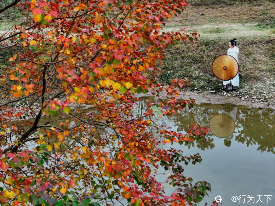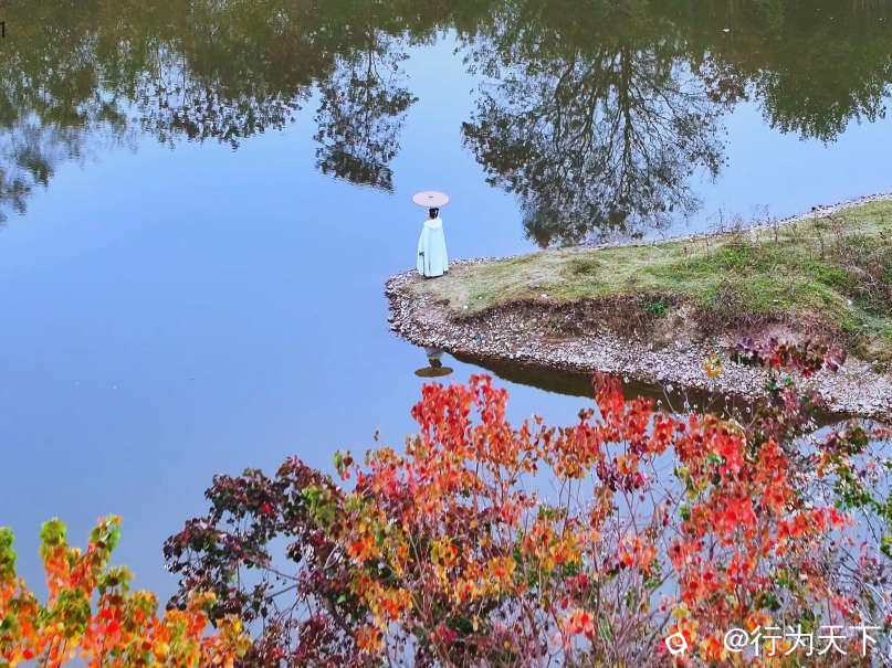 · 人物互动:身着浅色衣物,走入林中或立于江边,以斑斓树林为背景,营造氛围感。