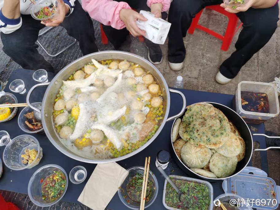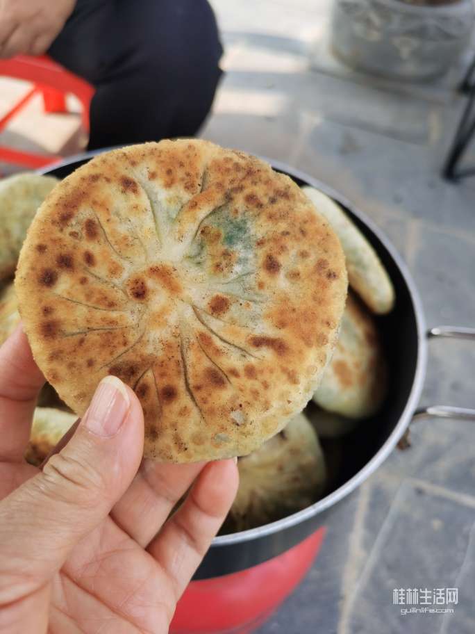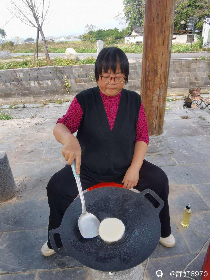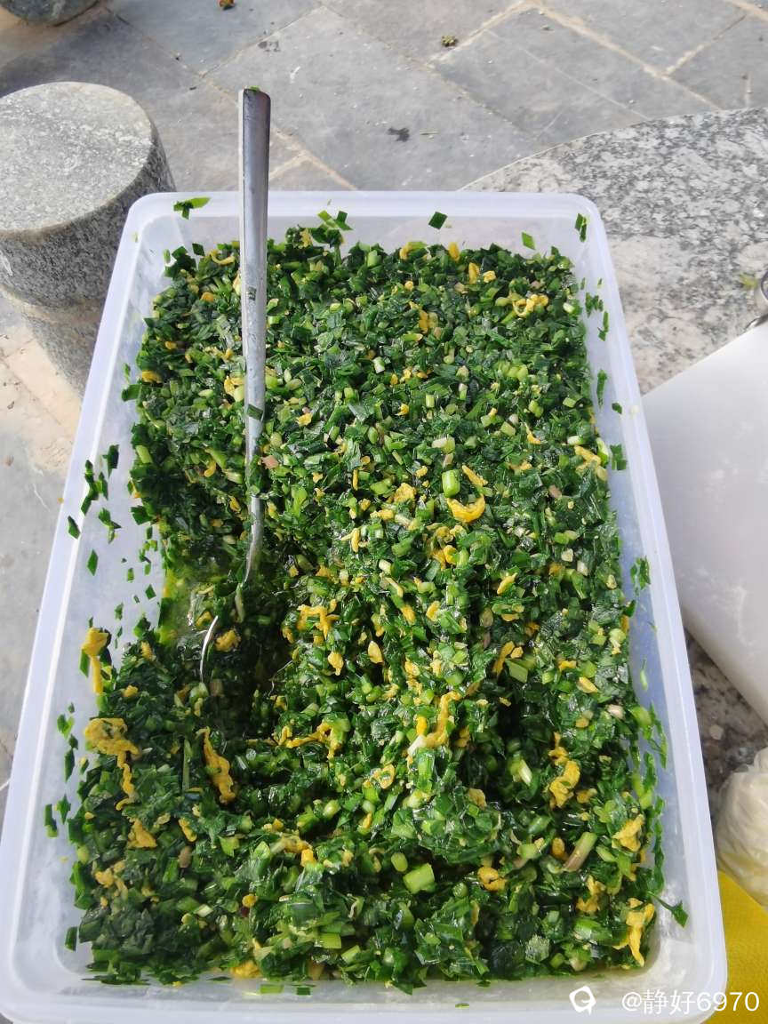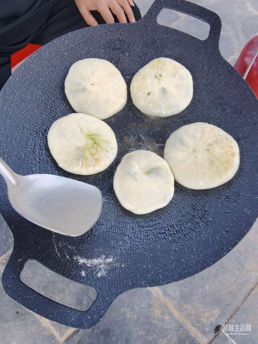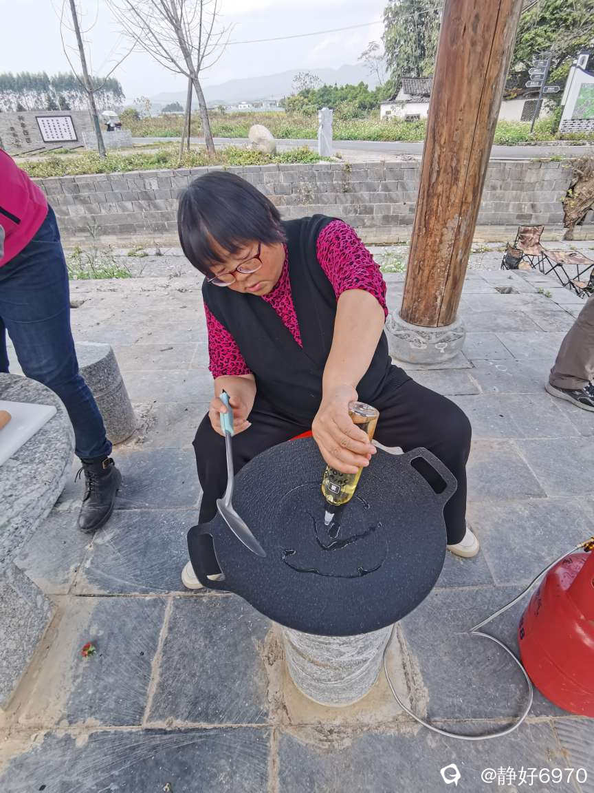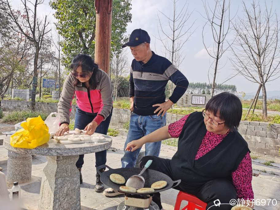 看完上面的图片知道他们要干啥子吗?那就是现场做韭菜盒子,他们说现煎现吃才香,哎,吃饭的口味都升华了,都不满足做好带出来的食物啦。