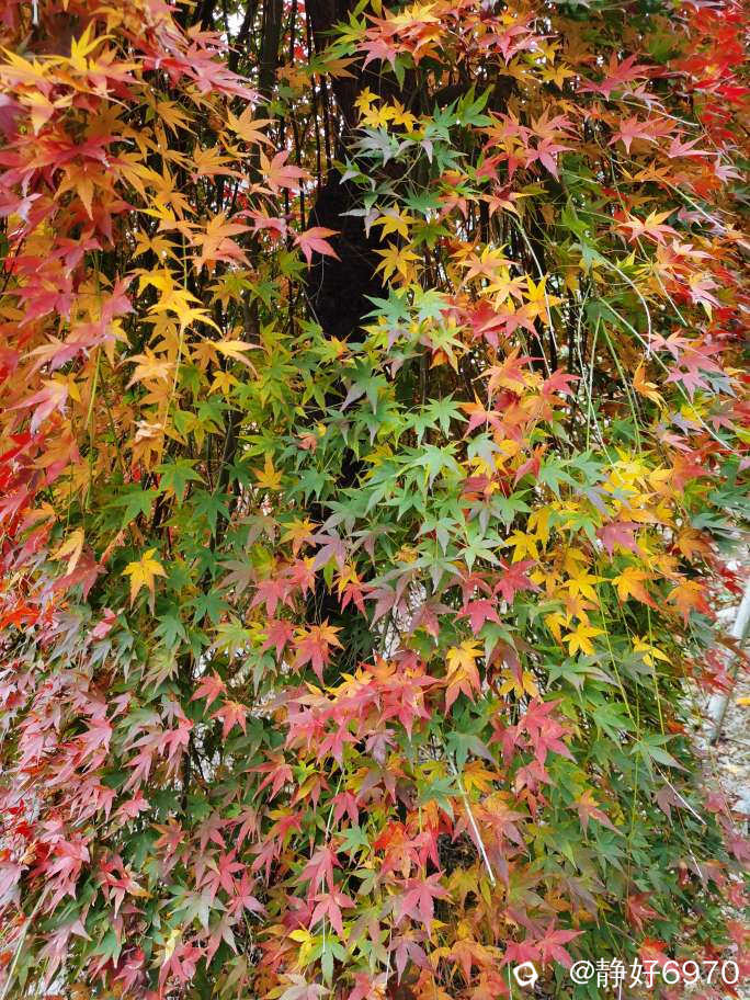 周末的确很多人,但是不影响我们来打卡,再就是这流泉枫不像平时看的枫叶,朝上生长,反而像瀑布一样朝下生长的,也像长发美女一样,倒垂下来。再就是有很多品种,五颜六色的,我也是第一次看到这么多颜色的枫叶。