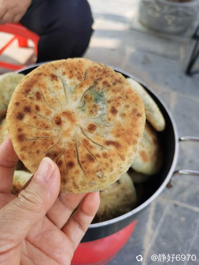看着这满满一锅韭菜盒子,是不是流口水了?我当初的确感觉好饿,他们叫我尝一下是不是好吃,我迫不及待地拿了一个,有点点烫嘴,还好,咬了一小口,顿时感觉外酥里香,韭菜很嫩,咸淡适宜,吃完嘴巴还留香味。