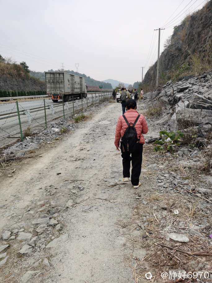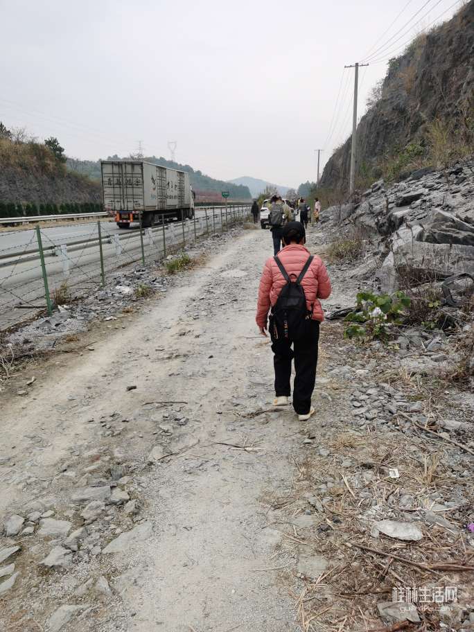上坡,经过一段碎石渣路,左转穿过高速公路隧道。