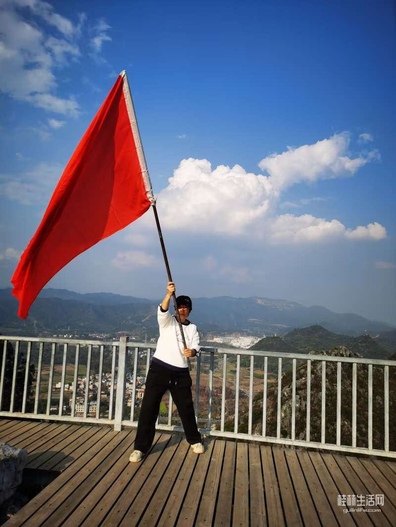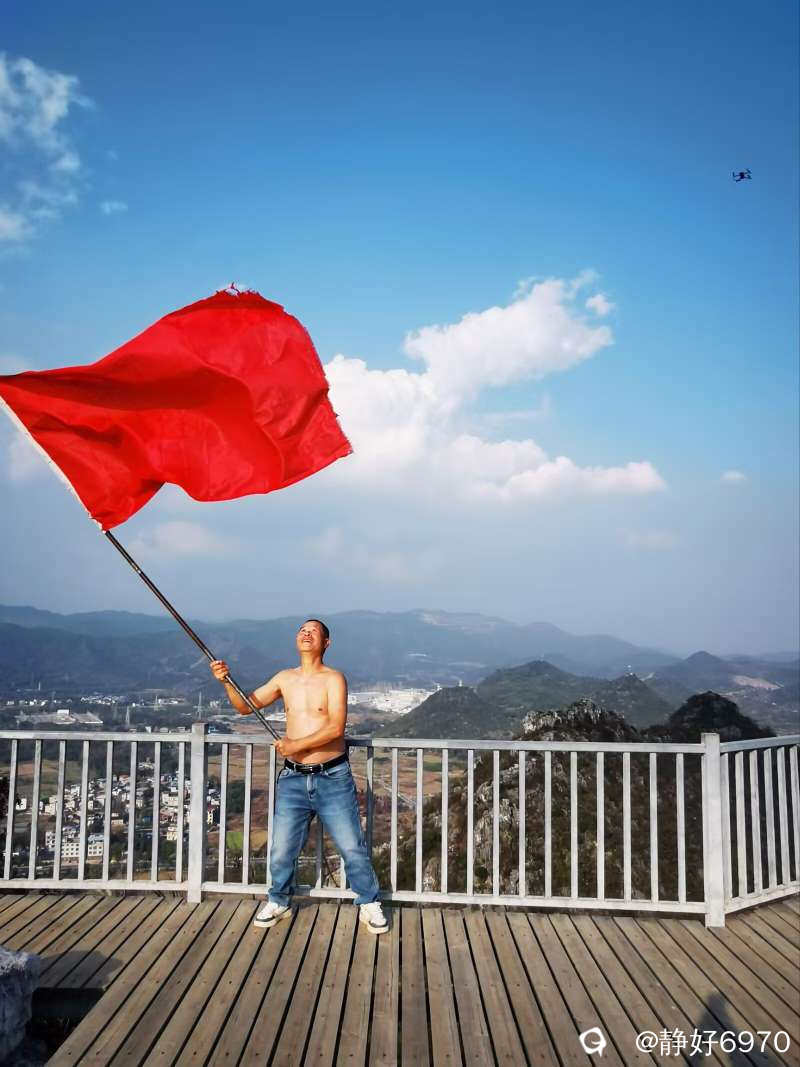 登顶的快乐就是站在山顶挥舞备有的红旗!体会那一览众山小的感觉!