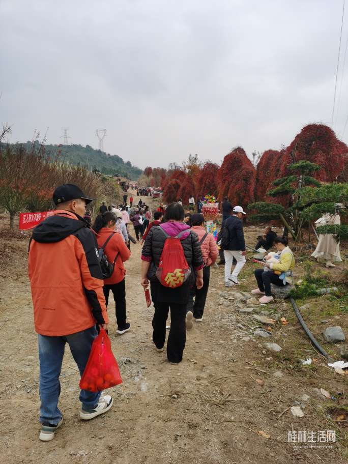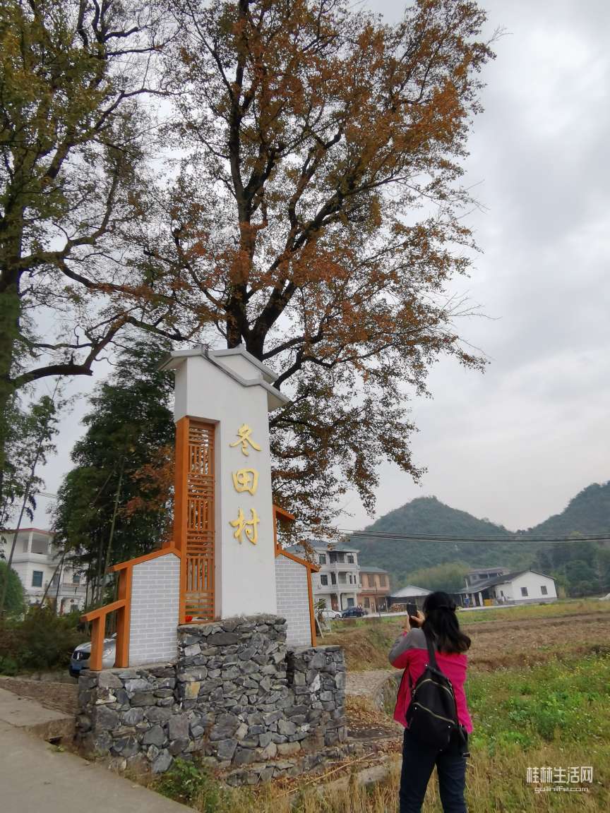 暖冬的桂林天气很给力,害姐妹们天天在群里问,今天又去哪里摆摊?最近禄坊洲,蒋家渡,穿山公园等几个好地方都去过N次了,想换个地方玩玩,我建议去严关冬田村看枫叶怎么样?开始想到是周末肯定人多,寥寥无几几个人报名,谁知道等了一个晚上,两车都装不下,还好有部车是七座的。