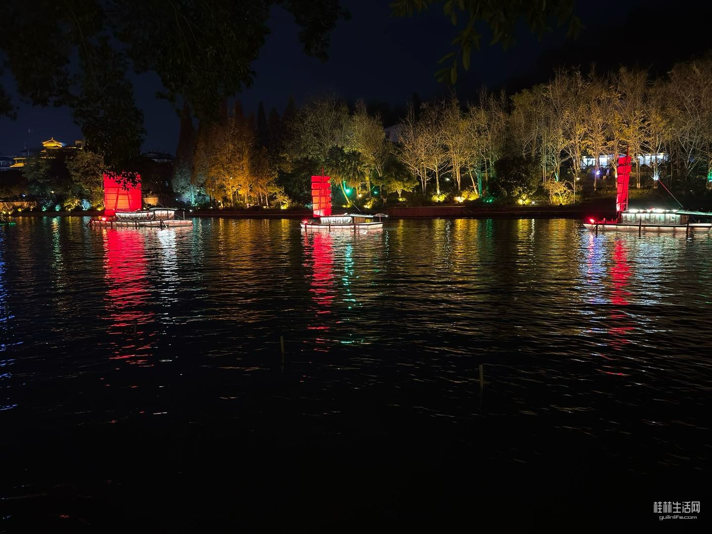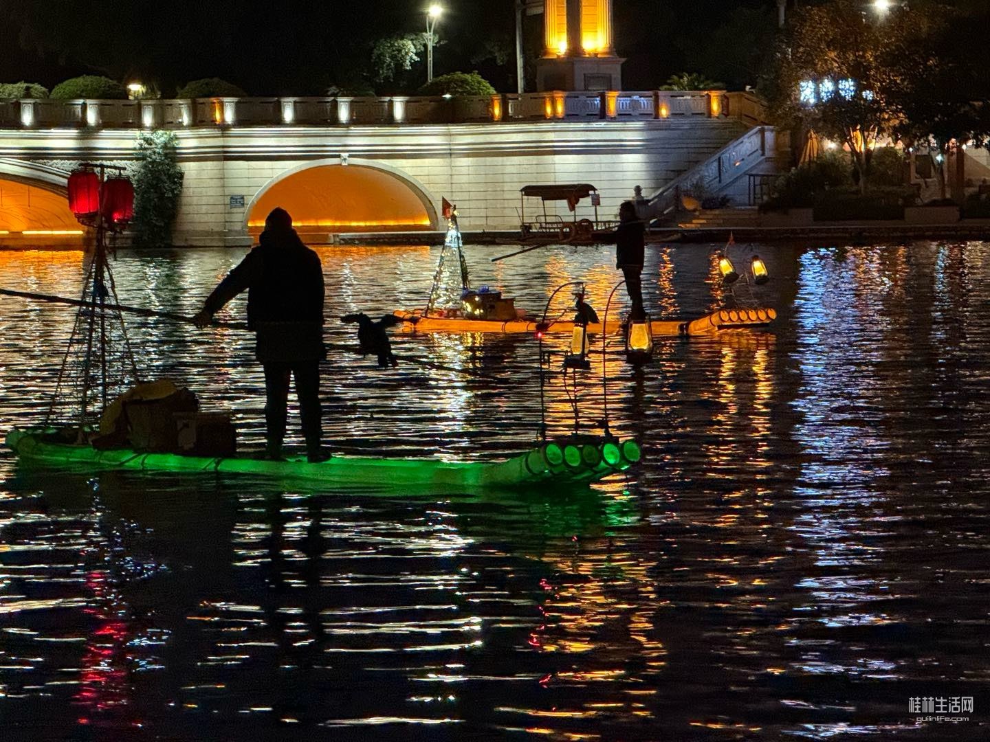 今晚上,忽然兴起,开车到桂湖边上散步,被号子声吸引了,就在湖边看了一下,号子配上音乐和竹排,鸬鹚鸟!这个场景真的很棒!为桂林点赞