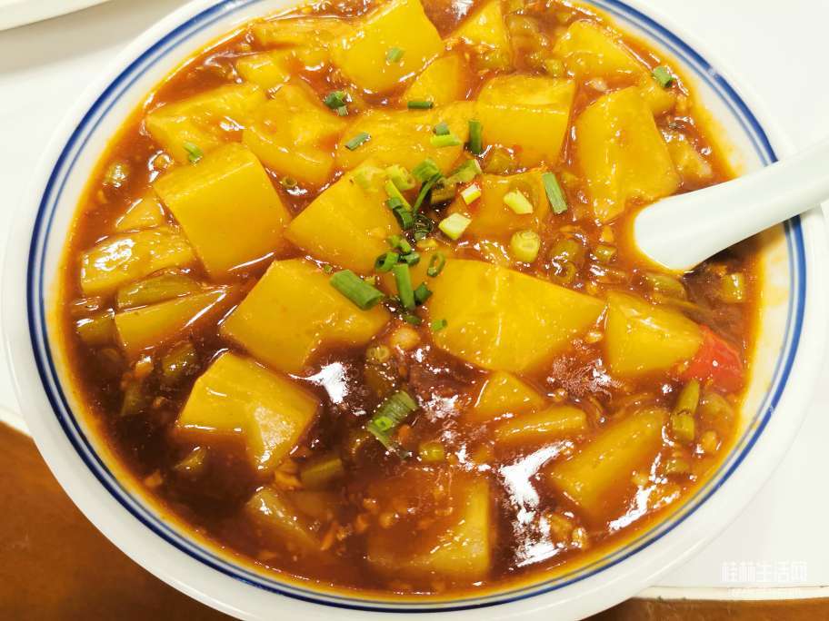 酸炒米豆腐,好多年没有吃米豆腐了,跟记忆中家乡的儿时味道还是有些出入,但是这一盆多汁的米豆腐真是下饭,泡着饭吃,胃口都被撑破了。