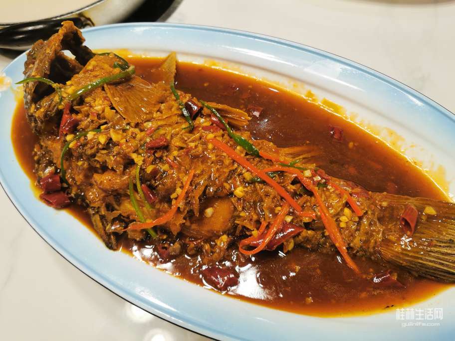 阿婆烧全鱼,很长很大一条,应该特别处理过,又香又酥又脆,在饭馆也能吃到来自长辈的家常味道。