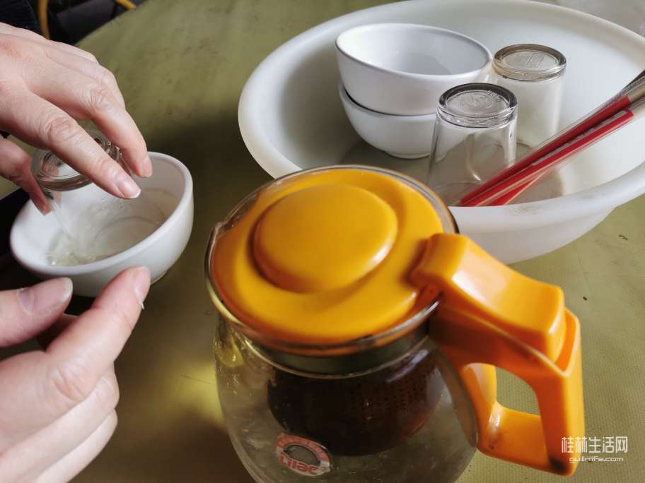用开水烫了个碗,静等肥仔开锅。