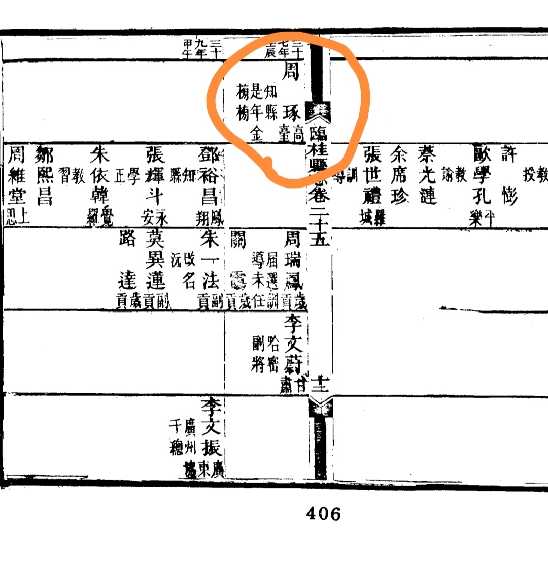 周琢在临桂县志里面的记载高台知县 是年金@@,网上查询到是授甘肃灵台知县,历知陇西、敦煌等县,以清白相贻令陇数十年,所至皆有治绩,身后无余积。
