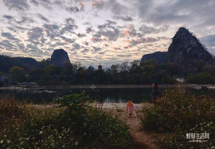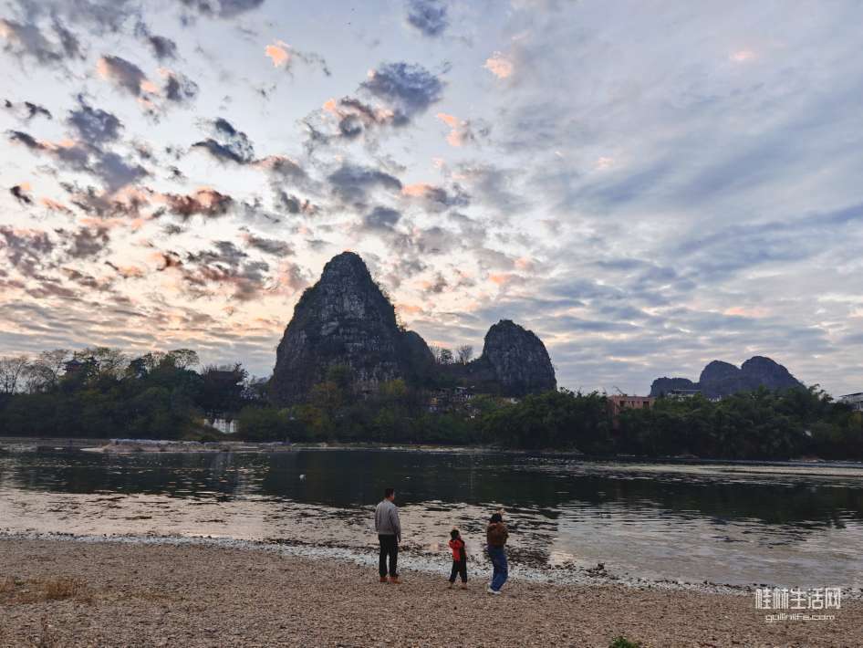 前段时间的晚霞,虽然不算红但冬天能有片状云晚霞实属难得,于是来到漓江边步道走走拍拍。