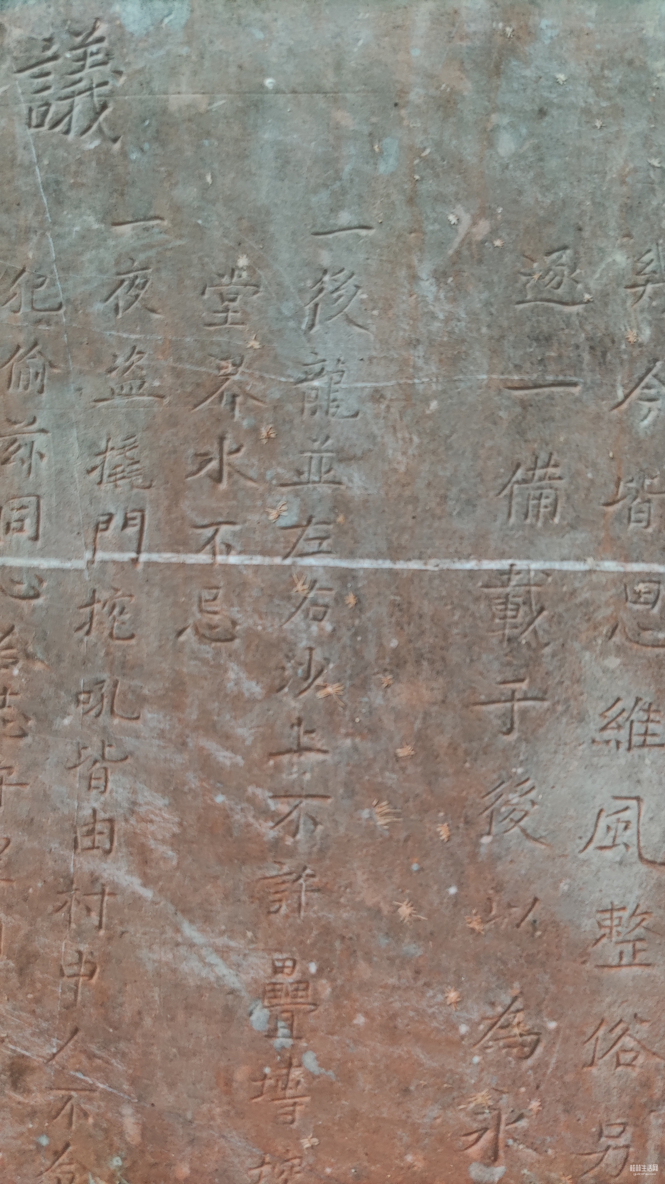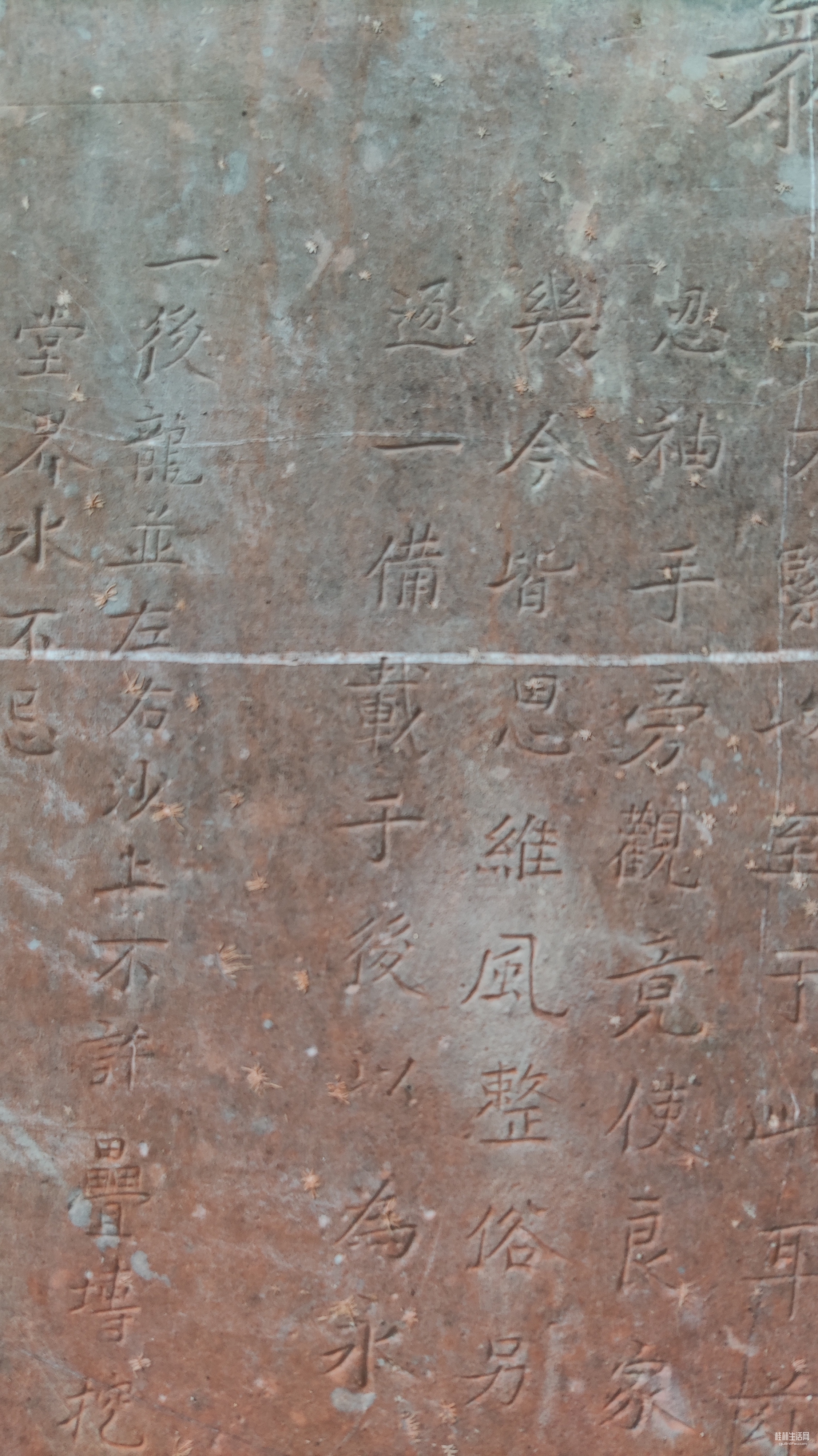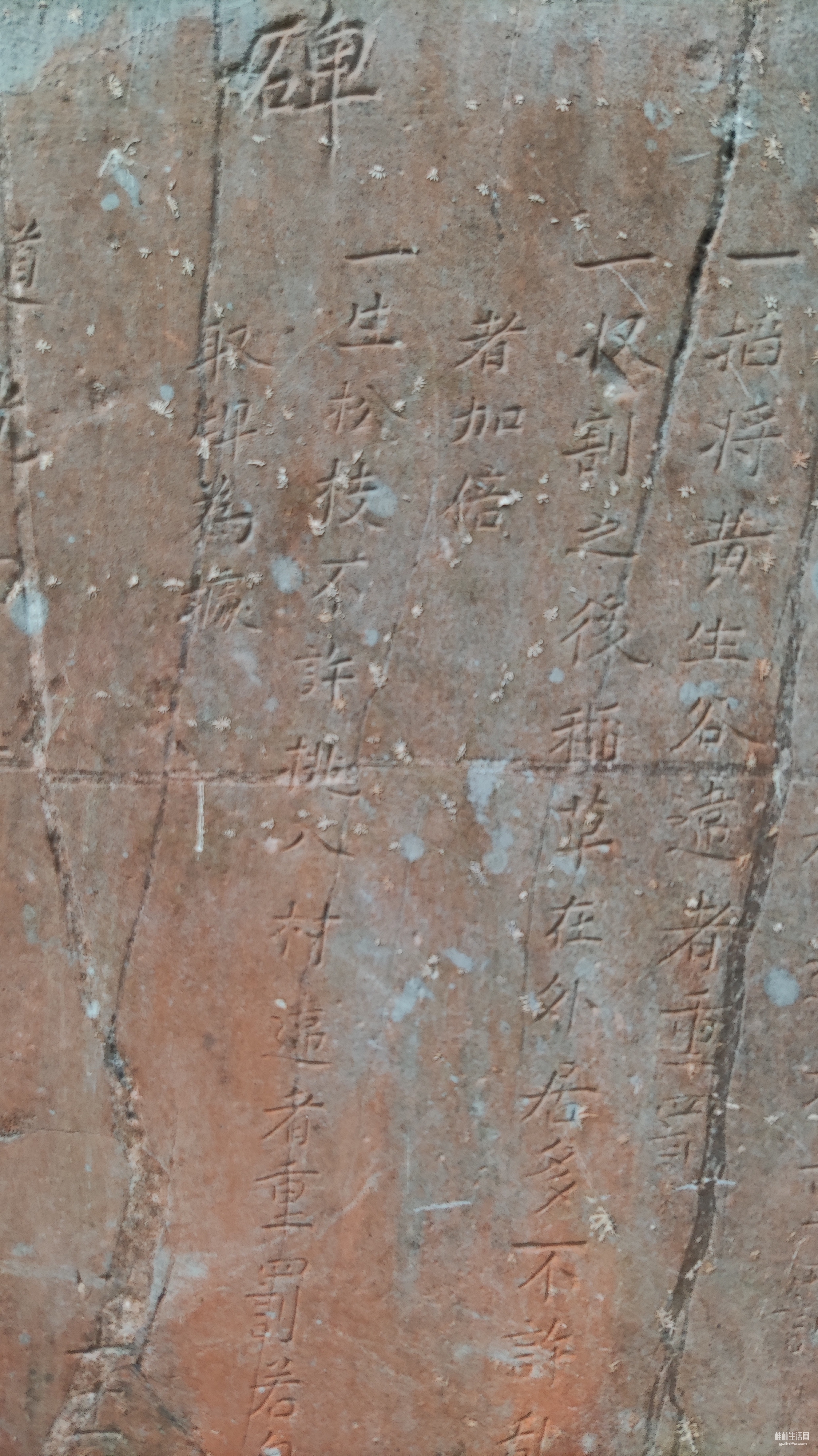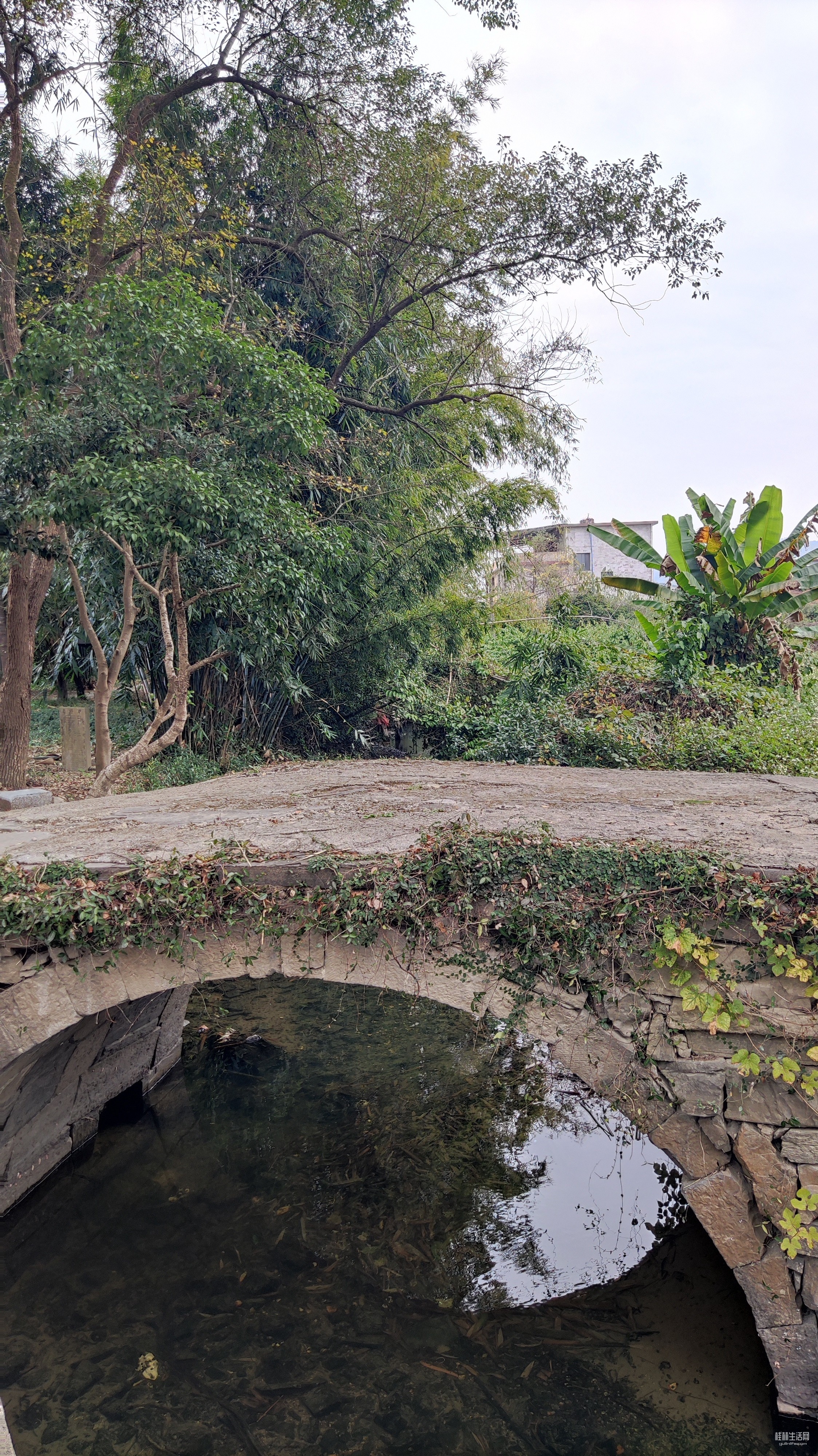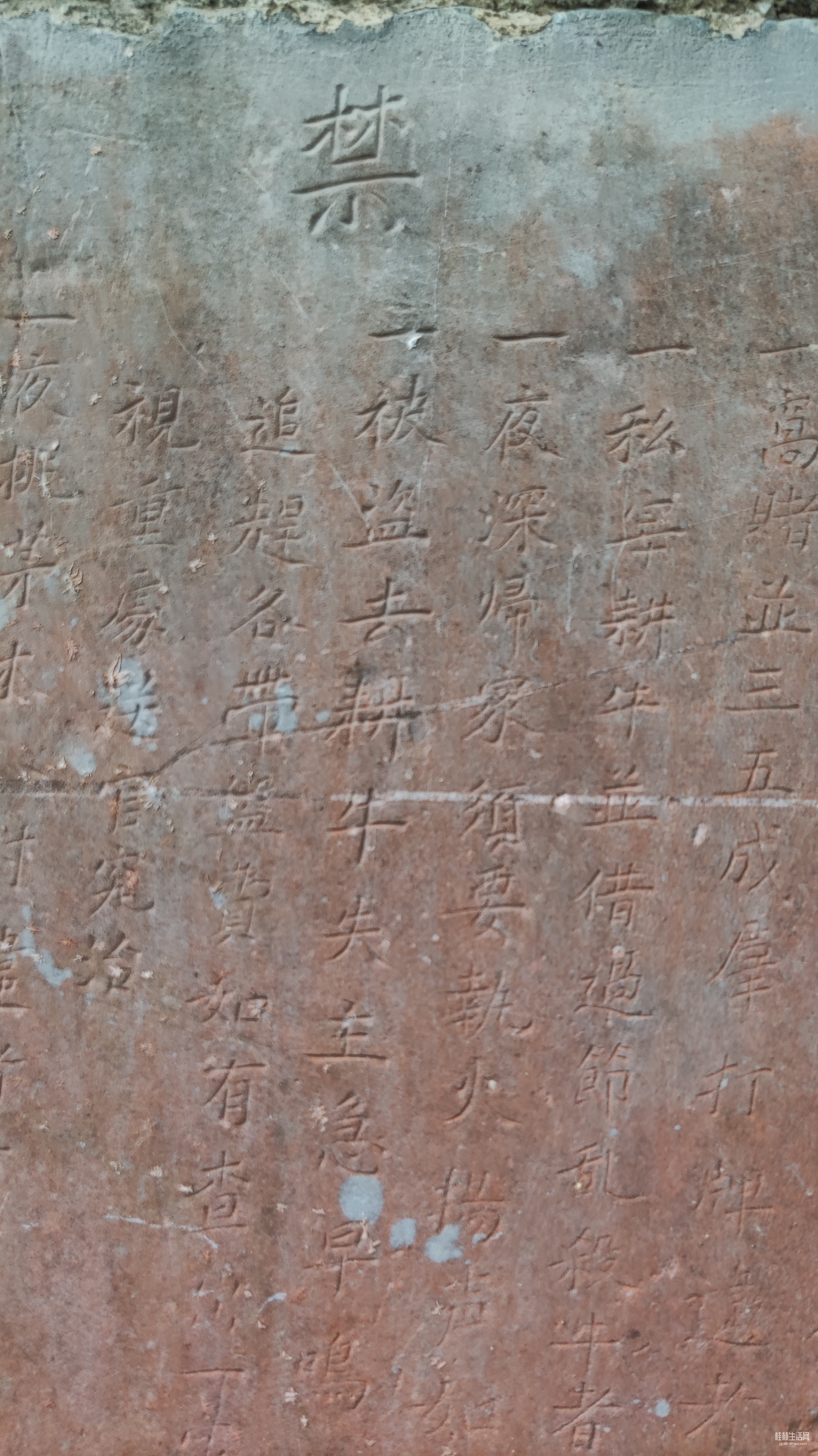 灵川潭下河边村,小河边有座石拱桥,桥面已经被水泥砂浆覆盖。旁边有座阳氏宗祠,石拱桥和宗祠间有兜大樟树,树下立有一块古碑,碑上有四个大字:众议禁碑。