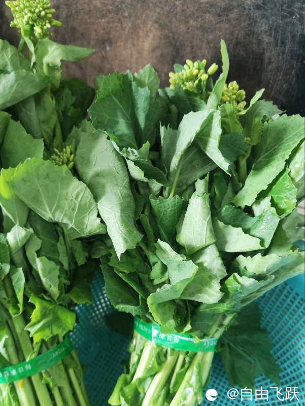 今天见到超市里有油菜花卖,就买了两把,可以吃的油菜花看上去又脆又鲜嫩,水灵灵的。