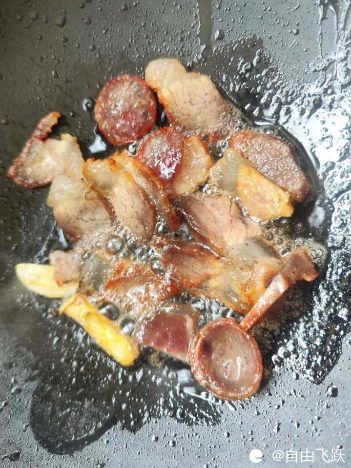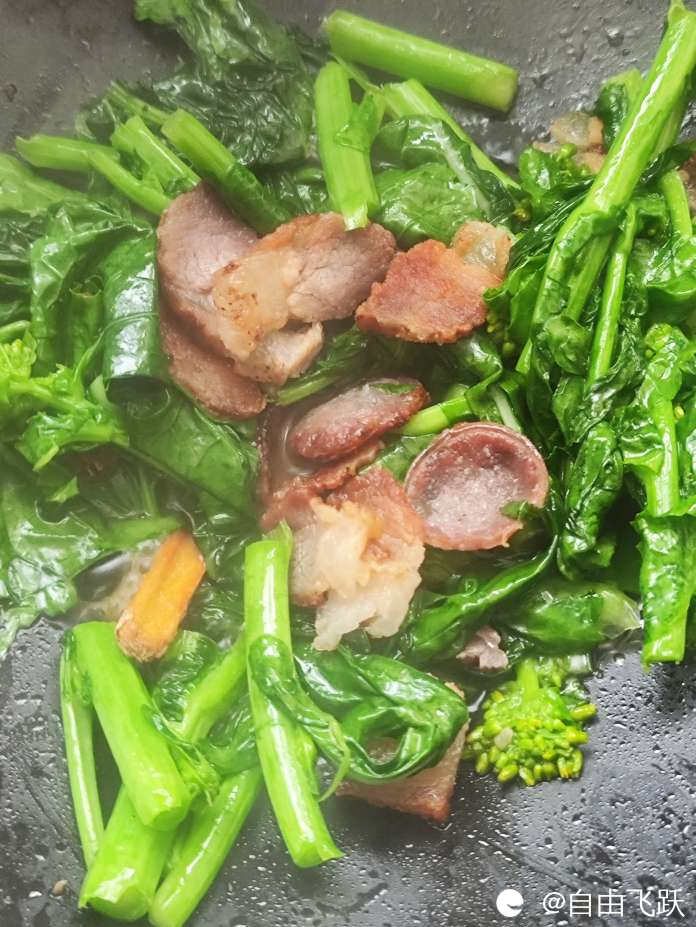 感受一下腊肉炒油菜花的滋滋声: