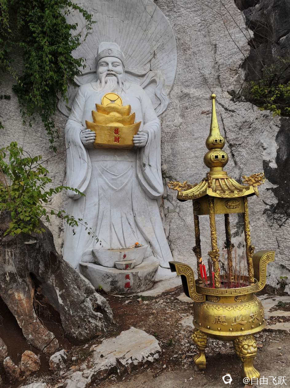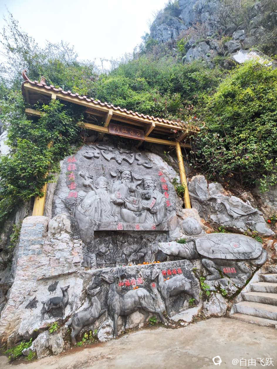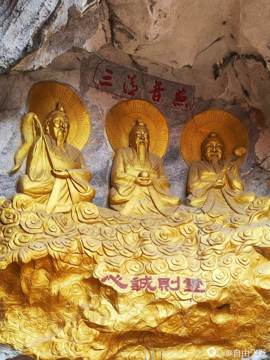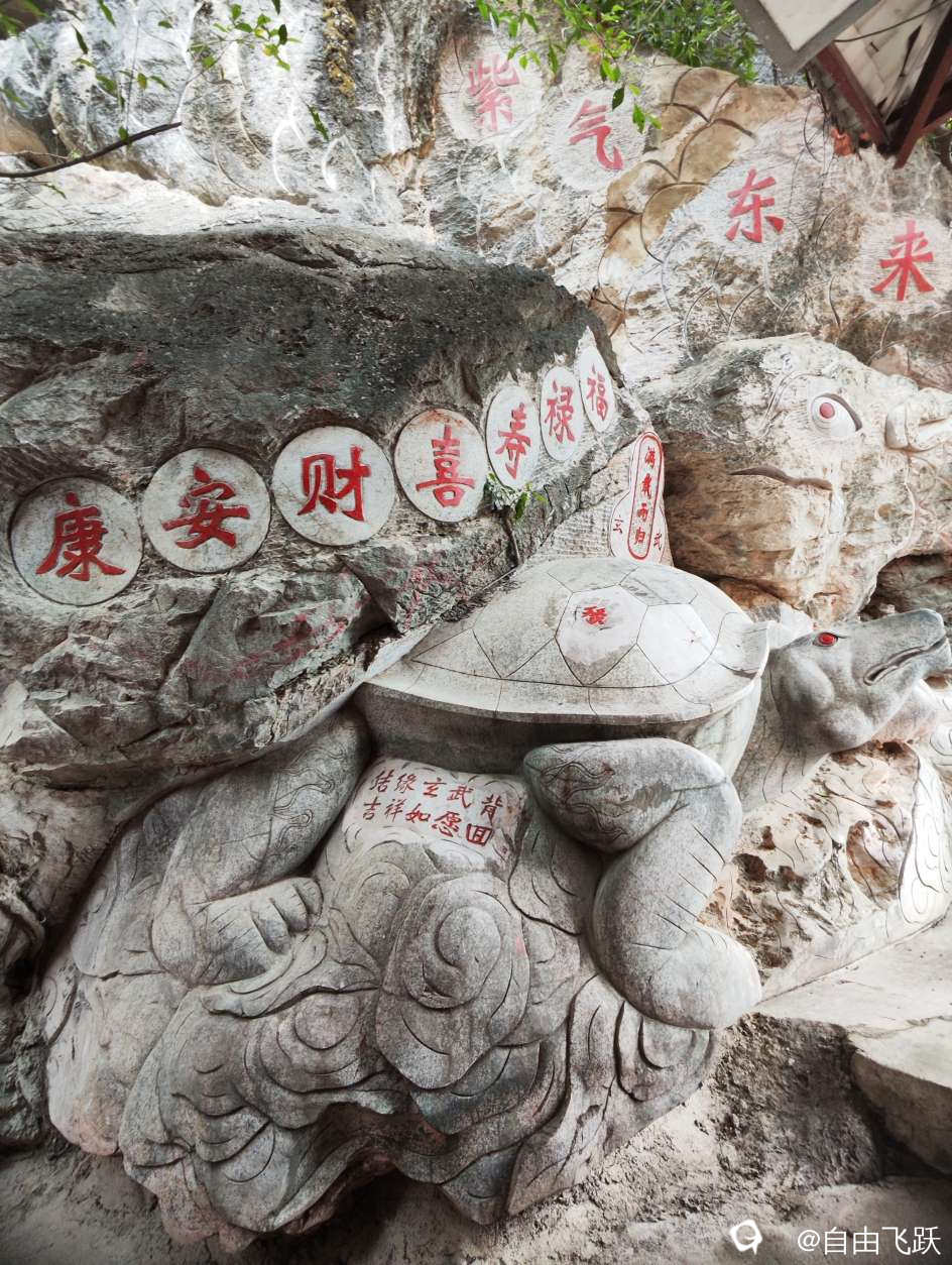 山虽不高,空气很好,古语讲:山不在高,有仙则名,这里隆重供奉着药王孙思邈,可以称做药王山,依山就石雕刻有中国传统道教各路神仙如玉帝、太上老君、三清、财神爷以及药师佛,月老也位列其间,没有结婚的男女去拜一拜应该有收获吧,另外还有鱼、龙、象、龟、蛇、猴、鹊等护法神兽跟地位不高的牛、马的雕像,极其生动,蛮有艺术价值。