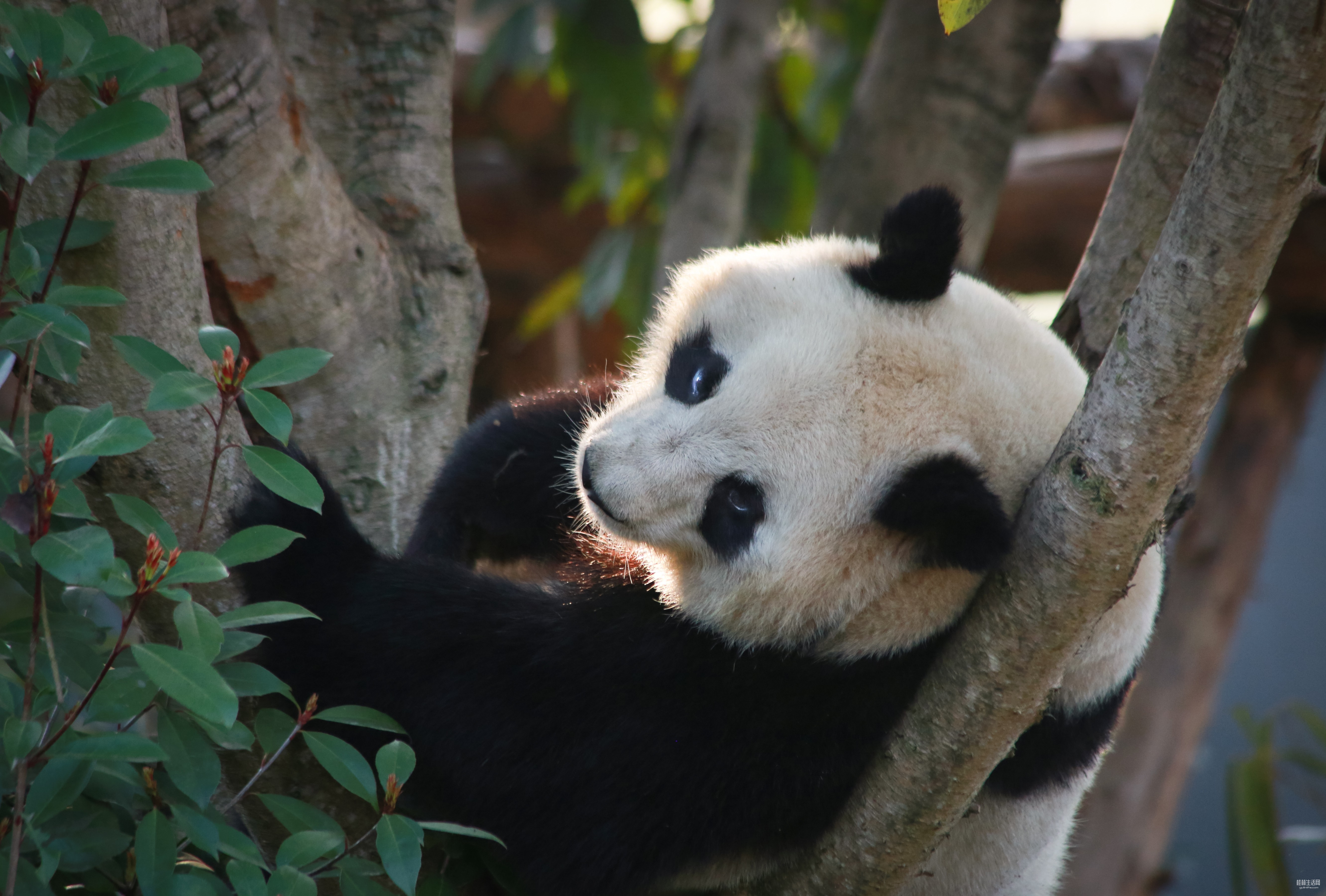大熊猫小狗家族的外婆:园园,今年22岁,依然年轻貌美,活力满满。这次居然遇到她在爬树,上窜下跳,跑来跑去的。其实园园比女儿园润和外孙女润玥更漂亮,小鸟眼圈飞起来,很妖娆妩媚,皮肤超白。真正的肤白貌美!园润和润玥皮肤都偏黄,遗传了勇皇的基因。小狗园润长相甜美,是基地四大贵妇之一,性格很好。别人说,不管你从哪只熊入坑,最后都会爱上陈园润。这次没拍到二狗润玥,据说搬去月亮产房了,十来天没展出。不过,我去1号墅拍到了三狗四狗润洋润泽,两个小家伙长得特别像妈妈和姐姐。也很活跃,爱挖煤,抢食护食更是和姐姐润玥不相上下。