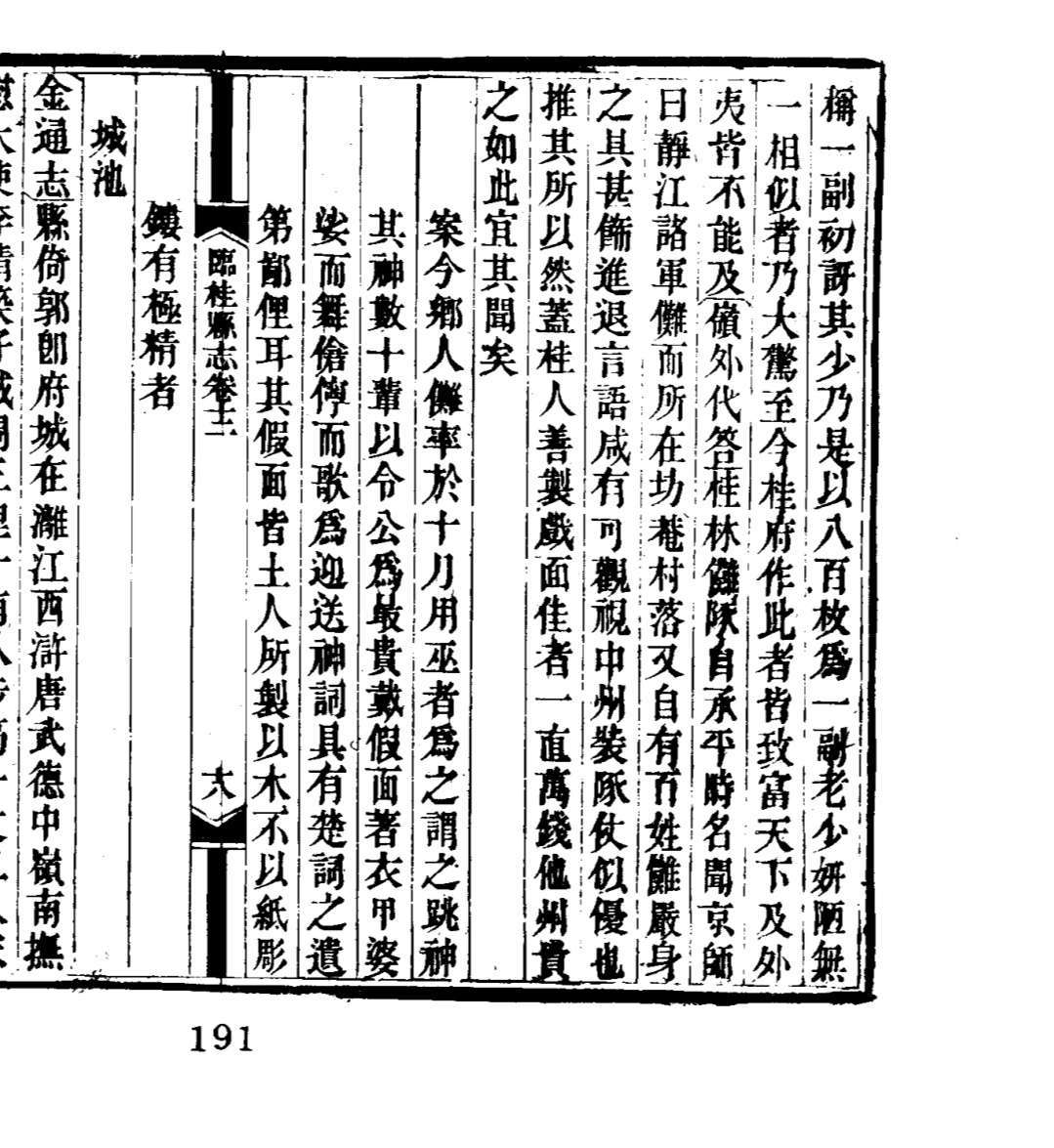(岭外代答)南宋周去非在公元1178年任桂林县衙时著,桂林傩队,自有承,平时名名闻京师,曰靖江诸路,军傩,而所在坊,巷,村落,又自有百姓傩,覆身之其甚,傩进退言语,咸有可观视,中州装队似优也,推其所以然盖,桂人善制戏面,佳者一值万钱,他州贵之,如此宜其闻矣。
