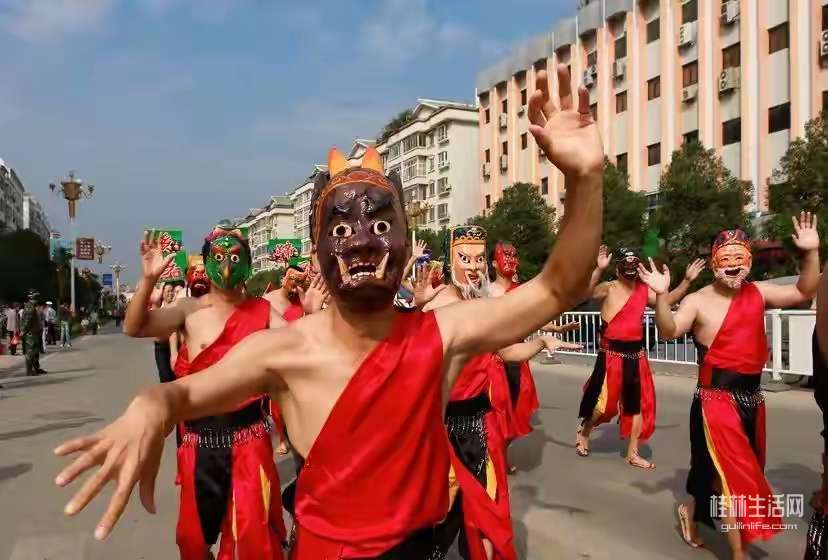 目前芦笛张家的五谷丰登傩舞,可以再研究,配上合适的音乐,推广一下,可以形成桂林节日庆典地方特色集体舞蹈。