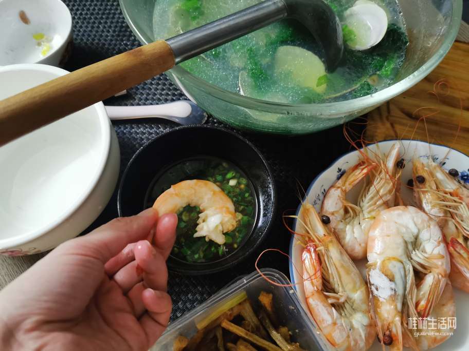 刚才的大对虾白灼出锅,保留其鲜甜本味,肉质紧致弹牙,真是清淡且美味。