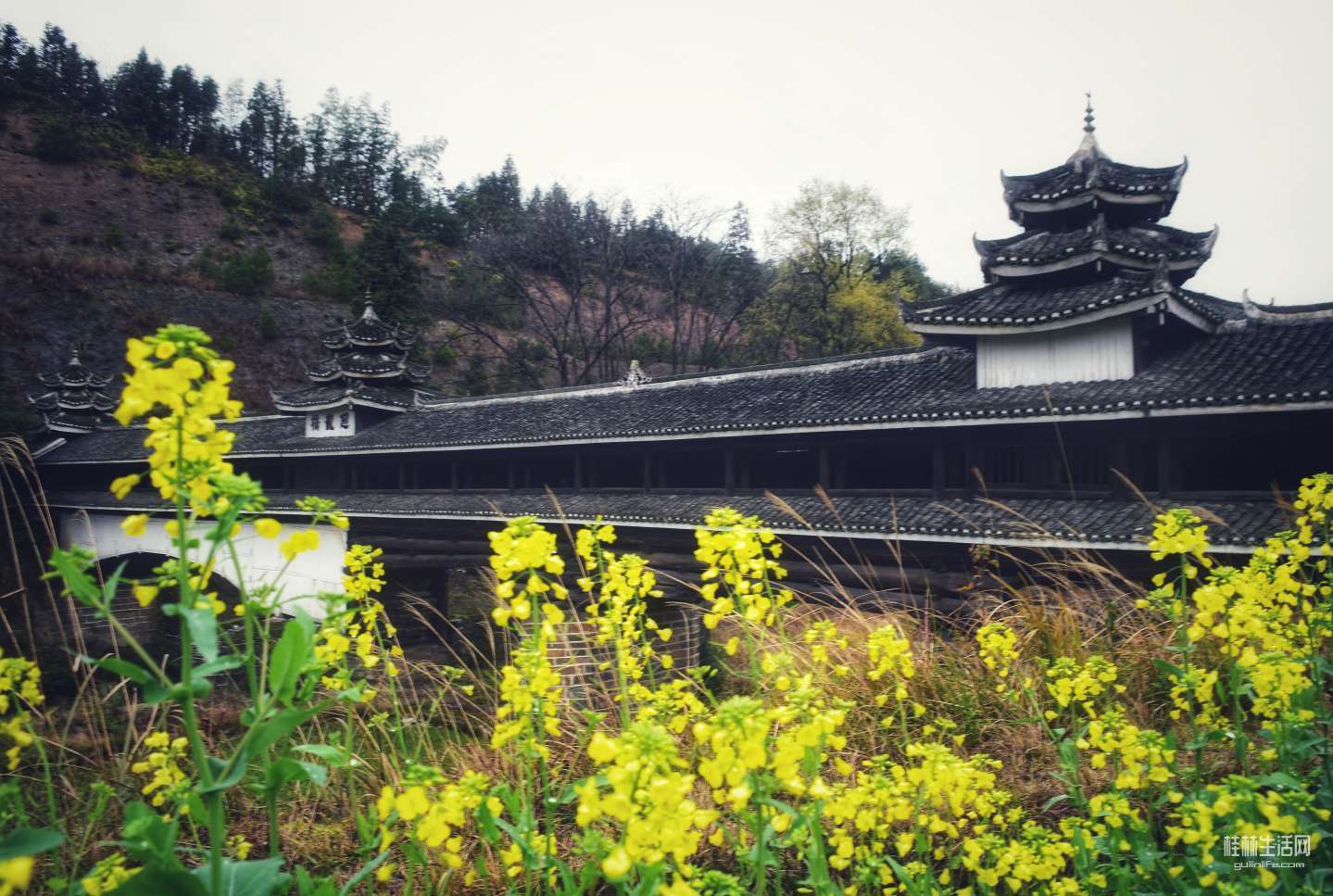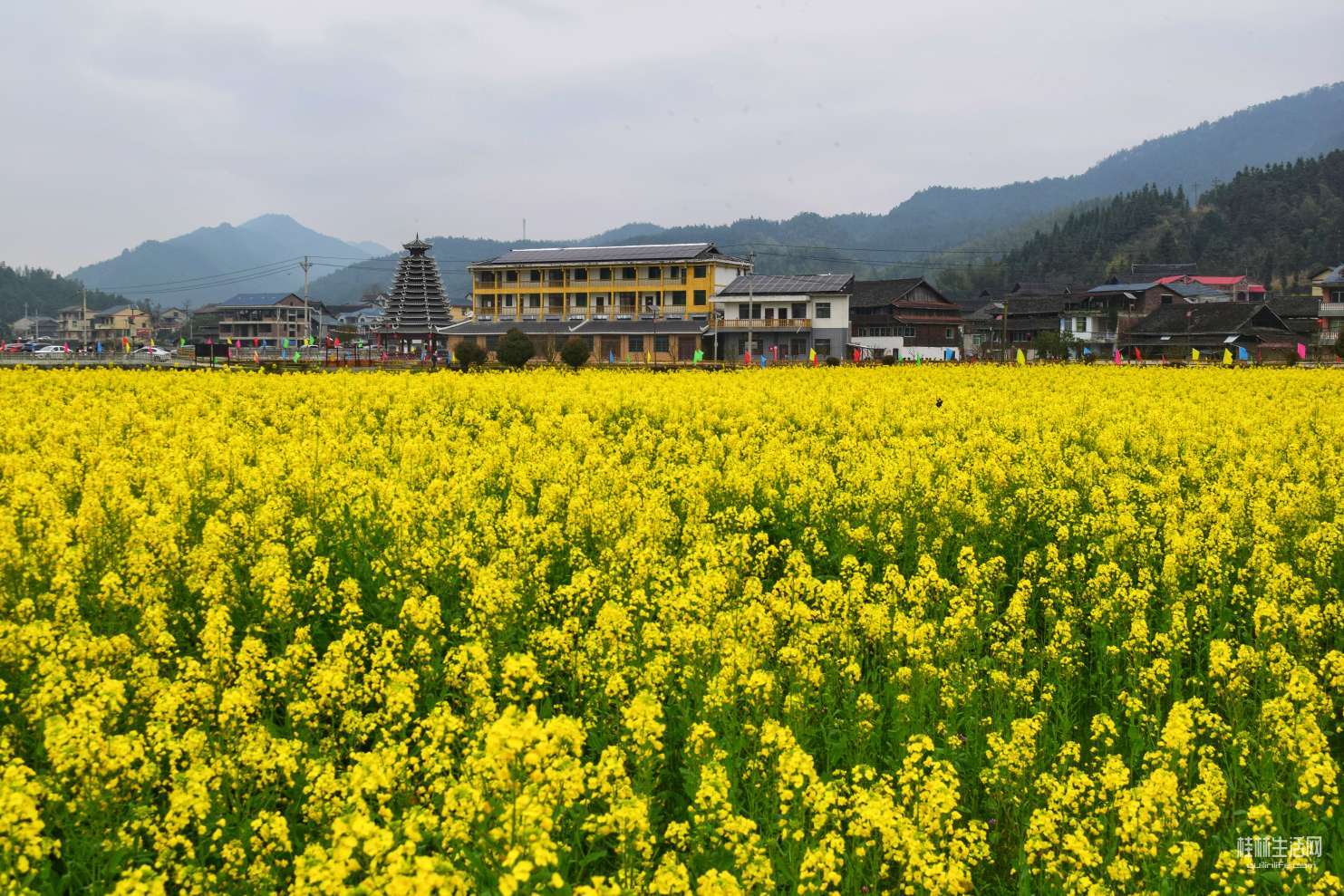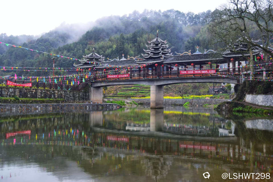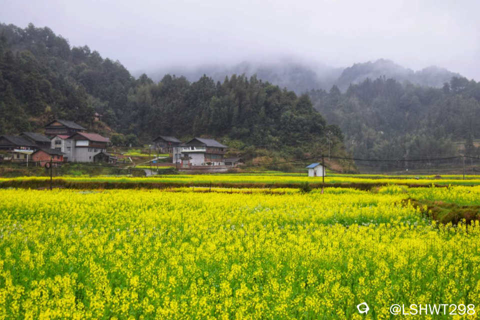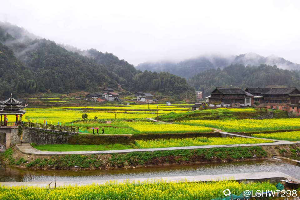 横岭侗寨,始于明朝天顺年间,位于通道坪坦乡河畔,背靠青山,三面环水。古香古色的青瓦吊脚楼被油菜花田包裹其中,极其赏心悦目。。。