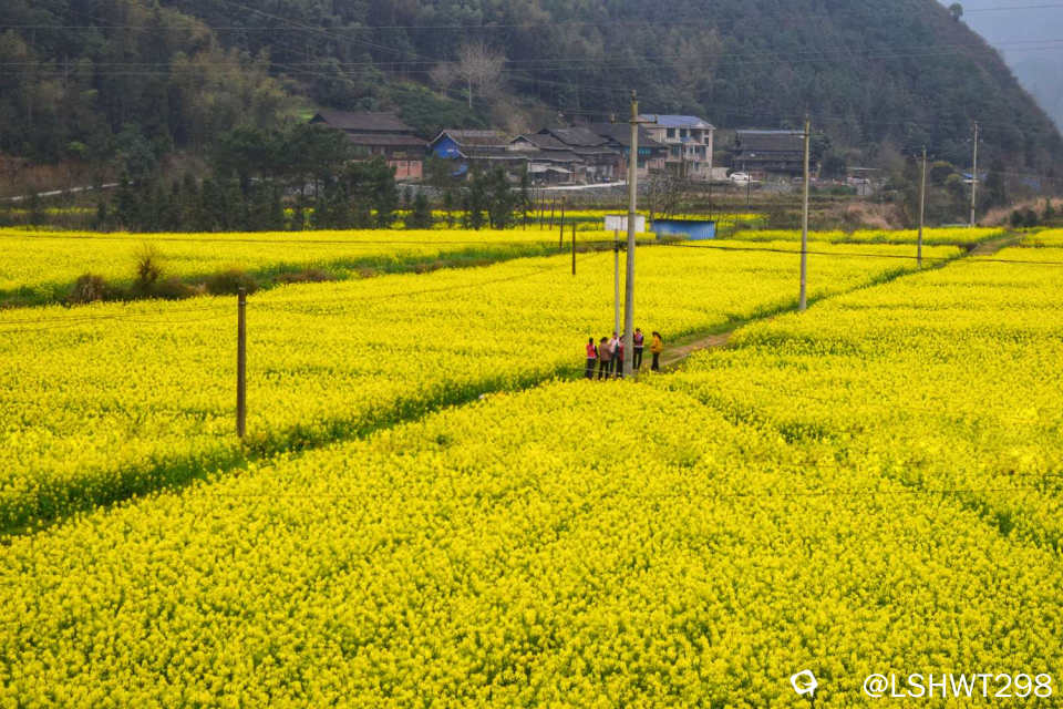 长安堡,位于通道县双江镇。时季近千亩油菜花田铺展金色绒毯,与远处鼓楼、侗寨勾勒出侗乡早春绝美轮廓。。。