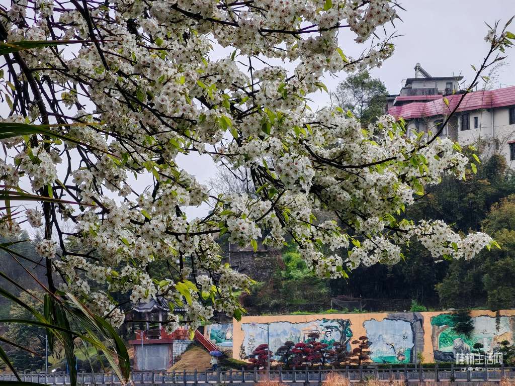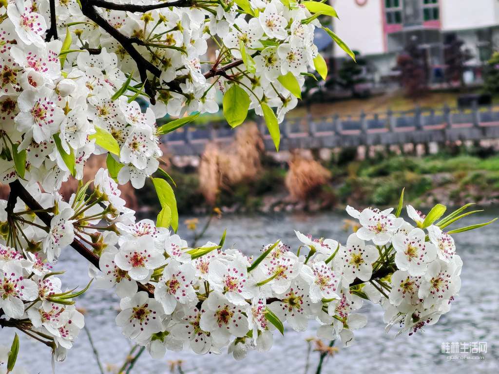 带水梨花倍娇媚,周遭景物皆入画。