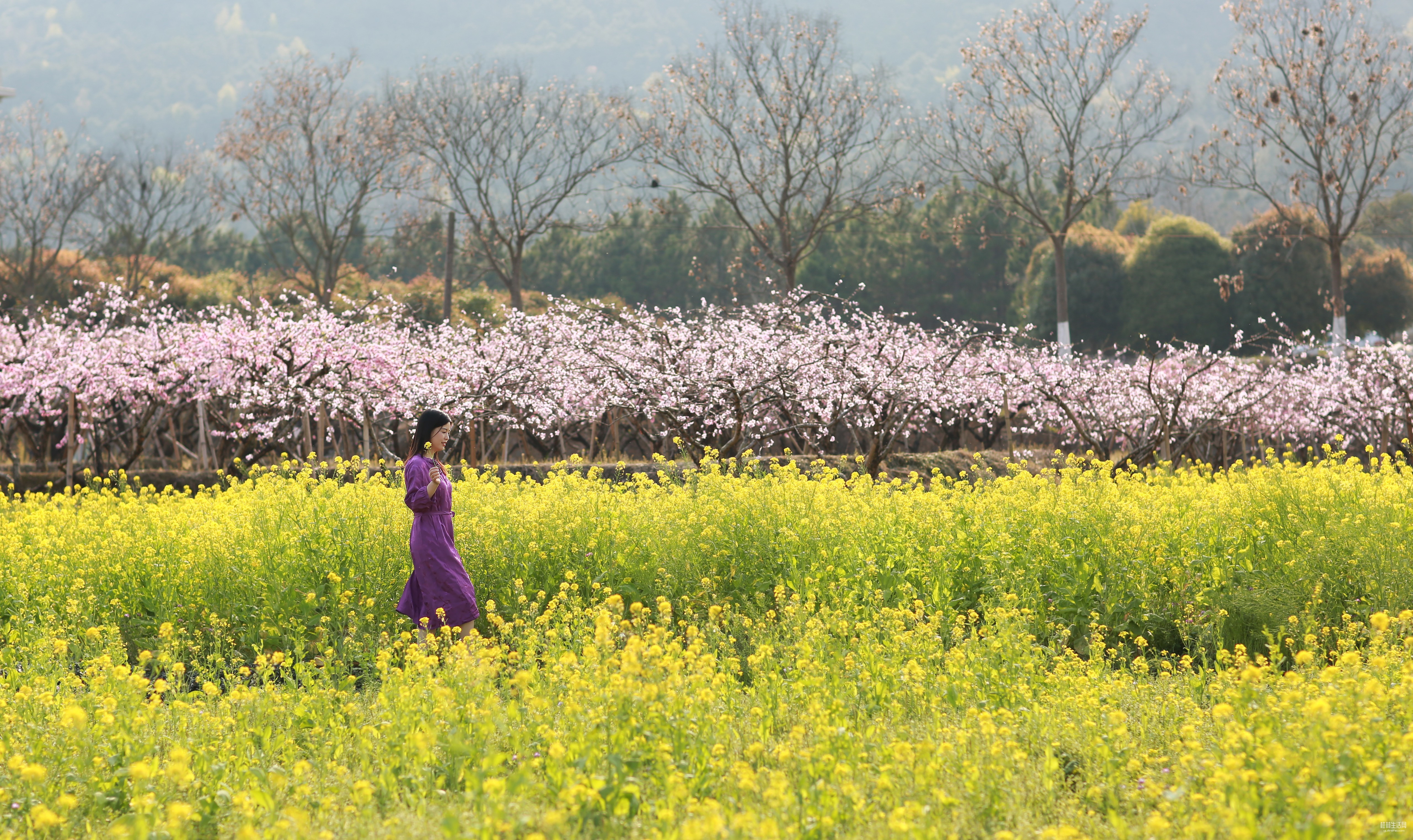 桃花开,高尚江村的桃花开了,恰巧我们来踏青。一片片粉红桃花,一块块黄色油菜花,在一座座蓝色背景山的映衬下,尤如一幅绝美画卷。我和妹子忍不住下车驻足拍照打卡,美呆了!