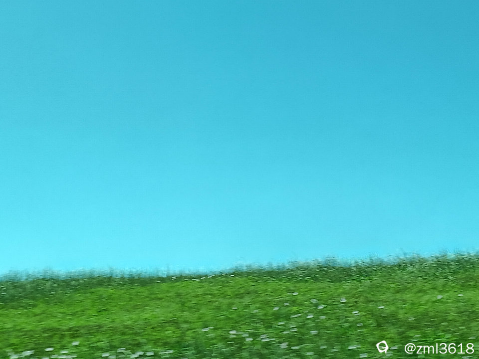 郊外的牧场在车窗边一掠而过。牧场里开满了黄花,粉色的小花。在车上拍的照片,比较晃糊。
