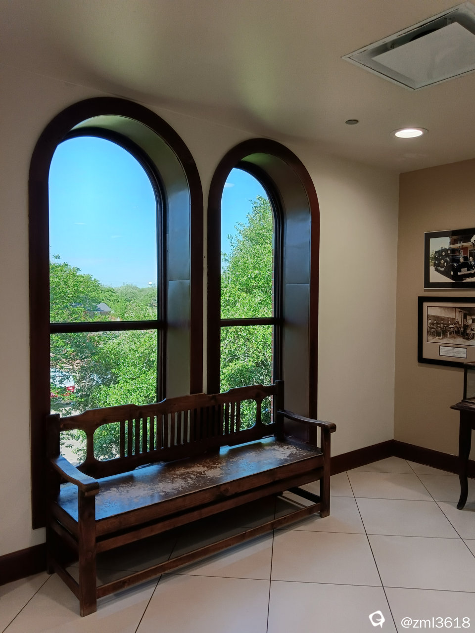 坐在休息大厅边观窗外风景。