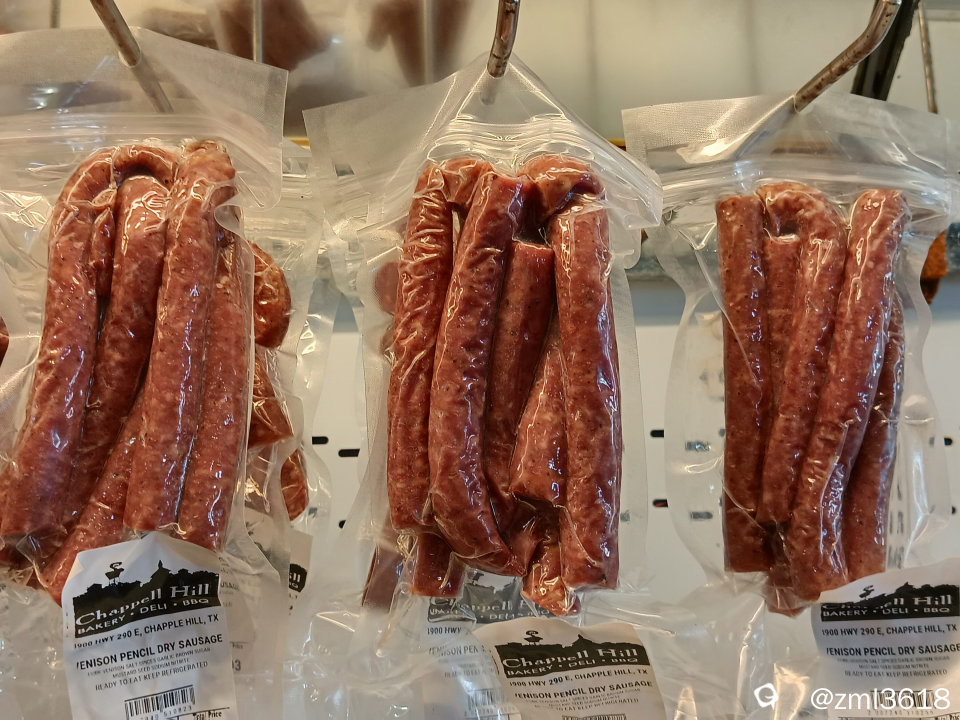 有牛肉肠,牛肉猪肉混合肠,令我感兴趣的是鹿肉肠,立马买了几包带回家。还未尝过鹿肉肠是啥味道。