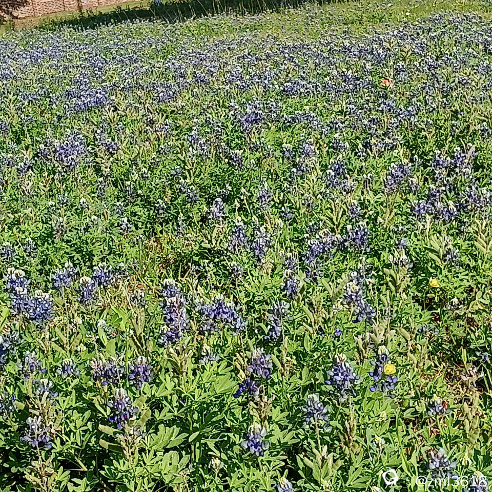 蓝帽子花是野生花儿,每年三月中旬至四月初,热情地开在公园里,公路边,牧场,如蓝色海洋,如地毯,如诗如画,大自然之美可见一斑。