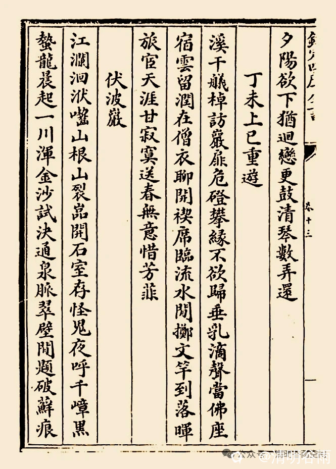 北宋时期,出任广南西路转运使的诗人章岘在桂林作有《丁未上巳重游》诗,这首诗记录了三月三上巳节在龙隐岩举行曲水宴,饮酒作诗的情景。诗中有句:“聊开禊席邻流水,闲掷文竿到落晖。旅宦天涯甘寂寞,送春无意惜芳菲” 。诗中“聊开禊席”指上巳节在临水处设野宴;“闲掷文竿”指诗人挥洒文笔吟诗作对,尽显文人旷达淡泊的心境。